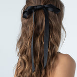 The Gretta Bow Barrette exudes the elegant insouciance of a ribbon casually tied in the hair, with the convenience of an easy-to-fasten barrette. The expertly draped silk ribbon stands out for its exceptional quality; each bow is crafted by hand in our Brooklyn studio. The automatic French barrette closure makes it versatile enough to wear in an endless number of hairstyles, in any type of hair.