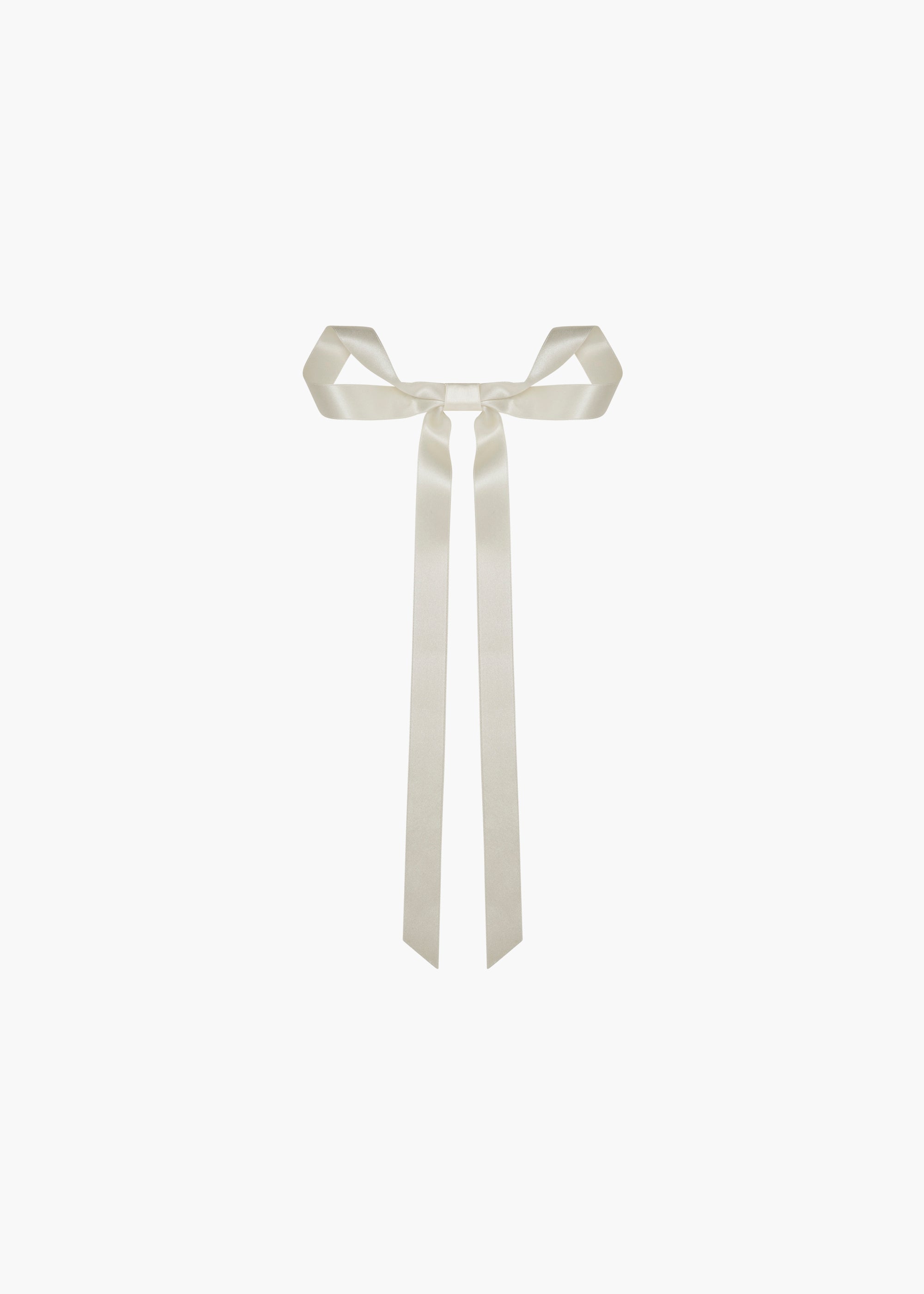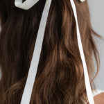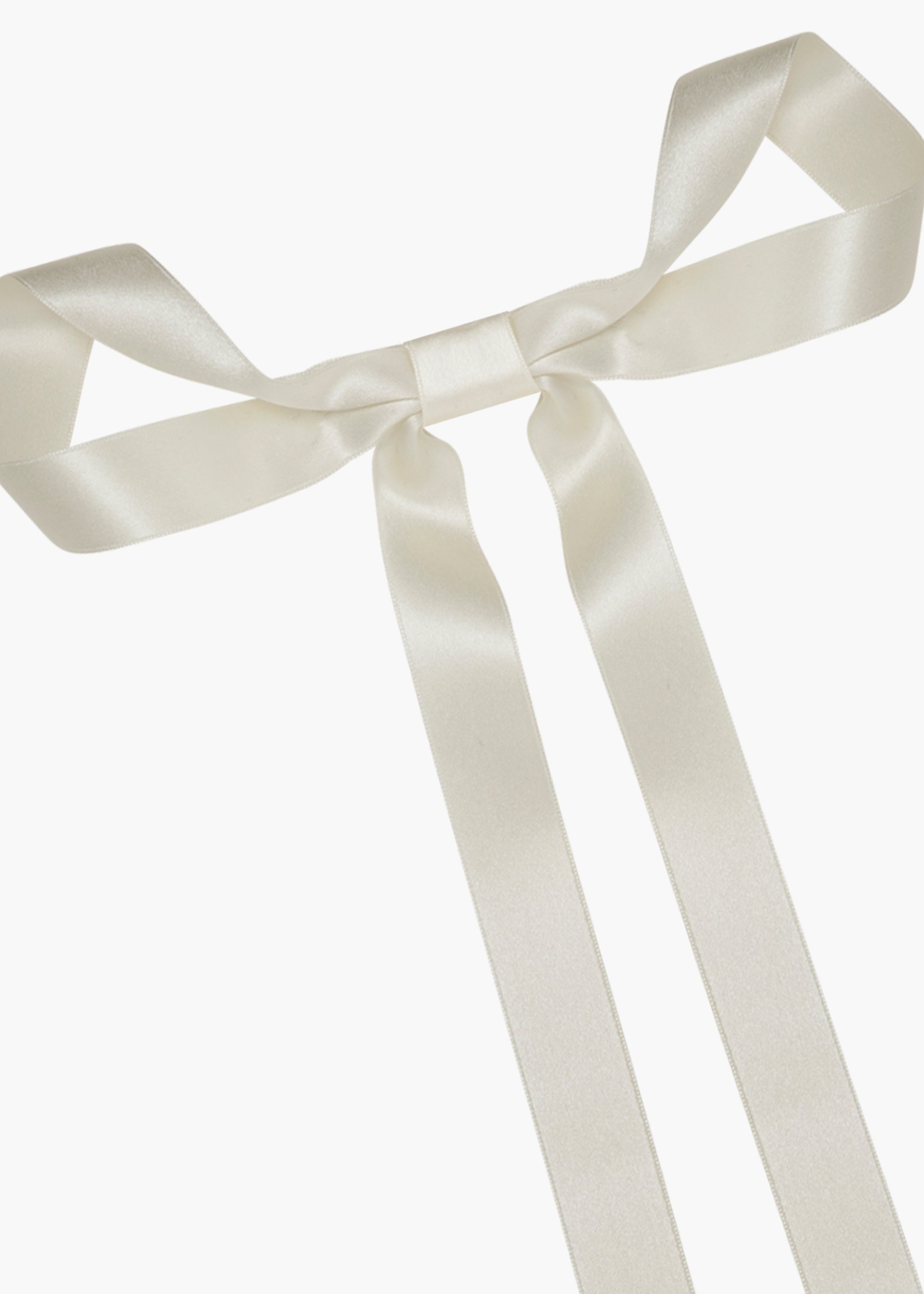 The Gretta Bow Barrette exudes the elegant insouciance of a ribbon casually tied in the hair, with the convenience of an easy-to-fasten barrette. The expertly draped silk ribbon stands out for its exceptional quality; each bow is crafted by hand in our Brooklyn studio. The automatic French barrette closure makes it versatile enough to wear in an endless number of hairstyles, in any type of hair.