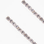 We've always been champions of hair jewelry and the Gwen Bobby Pins fully embody the idea of jewelry for the hair. Each pin features rows of tiny Swarovski crystals, set by hand in a process designed to maximize shimmer. This set of two pins can easily be worn solo as an upgrade to a basic bobby pin, but we recommend stocking up on multiple sets to layer and create party-ready looks in an instant. Dimensions: 2.25 x 0.25 x 0.25 inches Weight: 9g