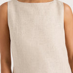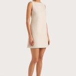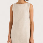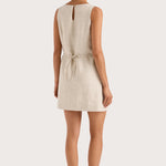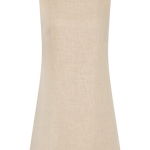A signature FAITHFULL silhouette, reimagined with new elevated details and designed from a 100% European Flax® linen fabrication. It is a sleeveless mini dress with a boat-style neckline and wide straps. It sits comfortably on the body with a smooth finish, before flaring into a slight A-line skirt. There is a keyhole detail at the back neck and a back waist tie, adjustable to tie in a knot or a bow. Fully lined and offered in a warm neutral shade, style with simple accessories for summer-inspired everyday wear or vacation wear.