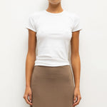 Cut in our anything but basic Kelly Cotton Rib,  The Kelly Slim Fit Tee is a figure-skimming crewneck, featuring tailored short sleeves and a full length.