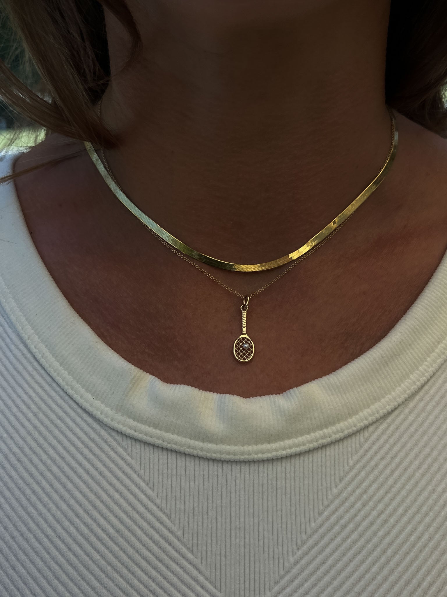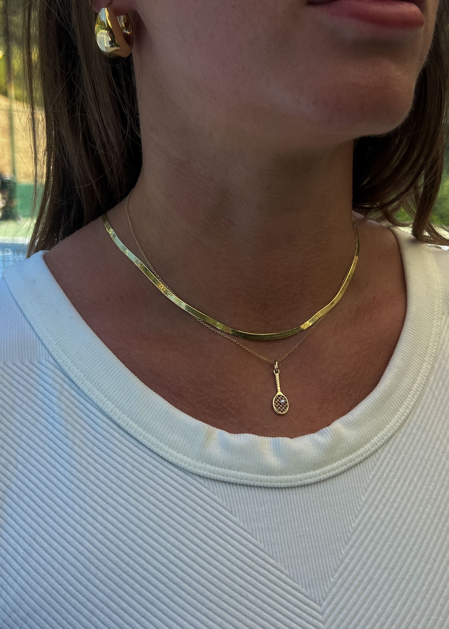 Stack this pearl ball and racquet with your favorite charms for a look that's uniquely yours.
