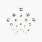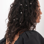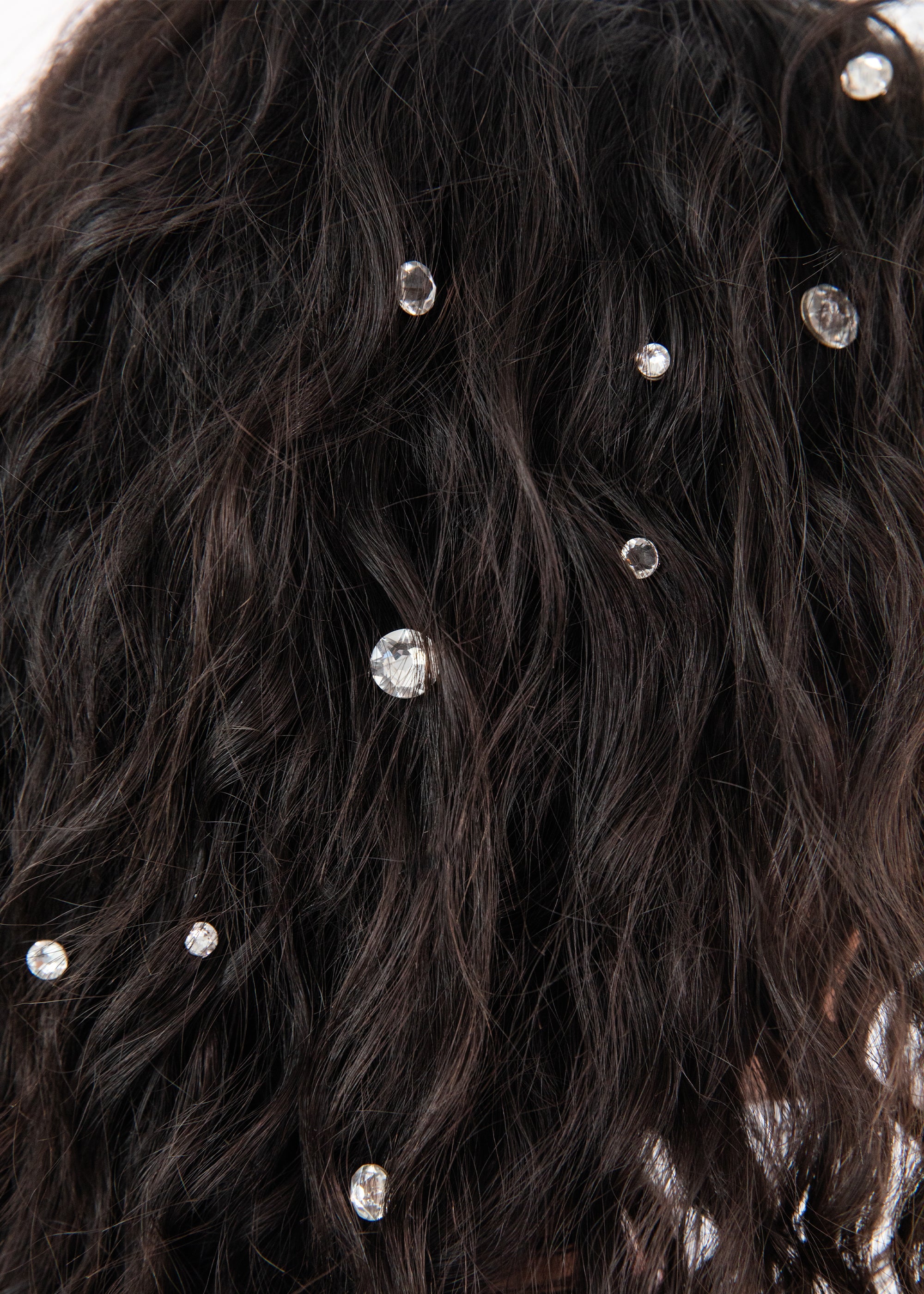 The Kira Hair Magnet Set of 20 creates the unforgettable effect of gemstones magically dripping from the hair. Made by hand in New York, each fine crystal is faceted for sublime sparkle, and the innovative magnetic closures allow these to remain secure in even the finest strands of hair. This set of 20 can be worn in endless combinations, in any hairstyle— layer multiple sets at once for a truly breathtaking look.