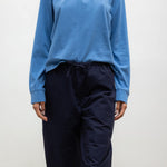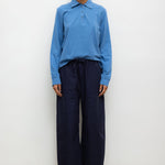 Cut in our garment dyed Kyoto Cotton, The Kyoto Carpenter Pant is a classic utility inspired trouser. This pull-on style pant features a baggy leg silhouette that hits at the ankle, with topstitched utility panels at front, an adjustable waistband, and patch pockets at back.