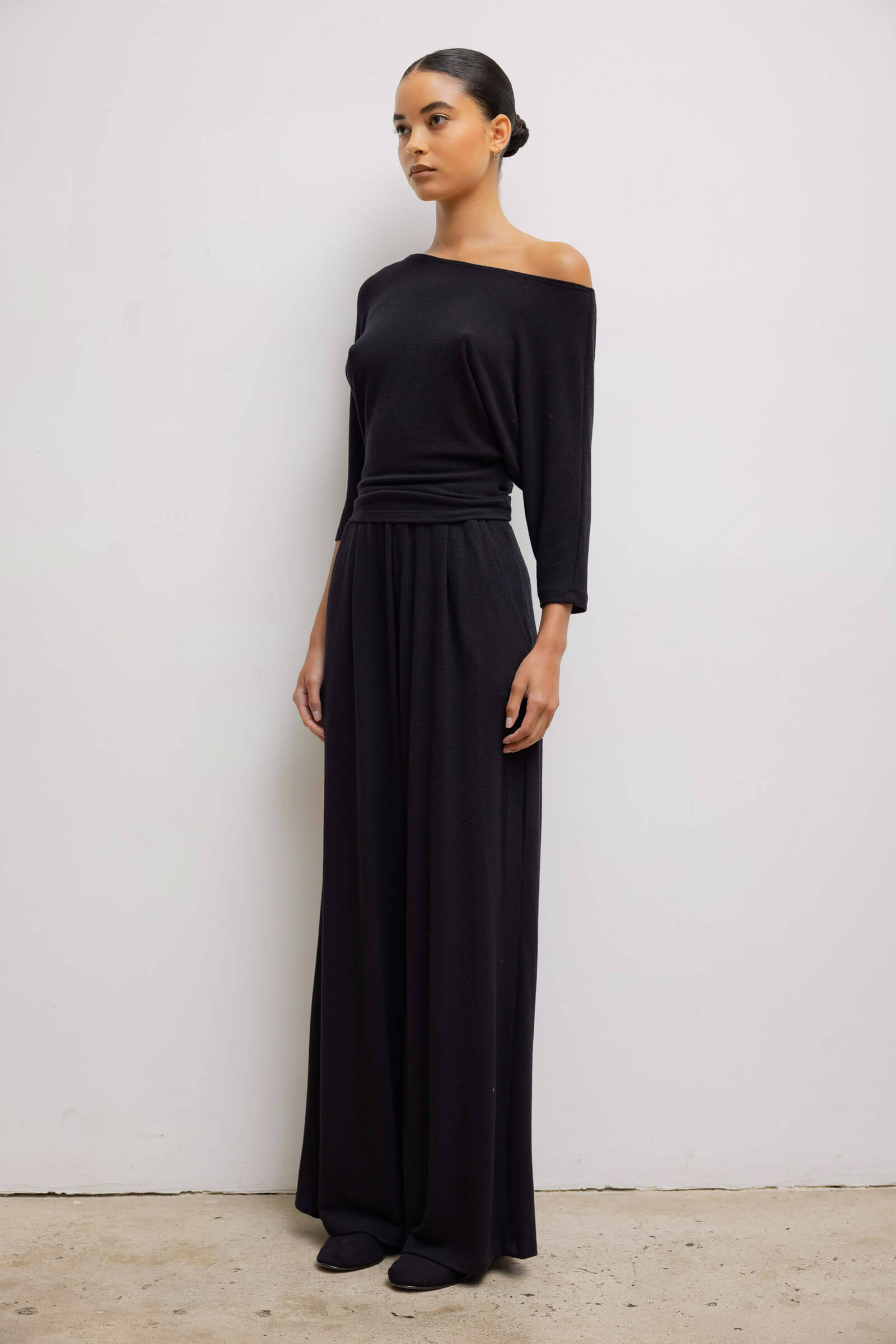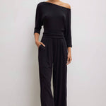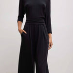 Cut in our buttery soft Lauren Sweater Jersey, The Lauren Pleated Pocket Pant is a relaxed, wide leg silhouette featuring subtle front pleats and a wide, high rise waistband.