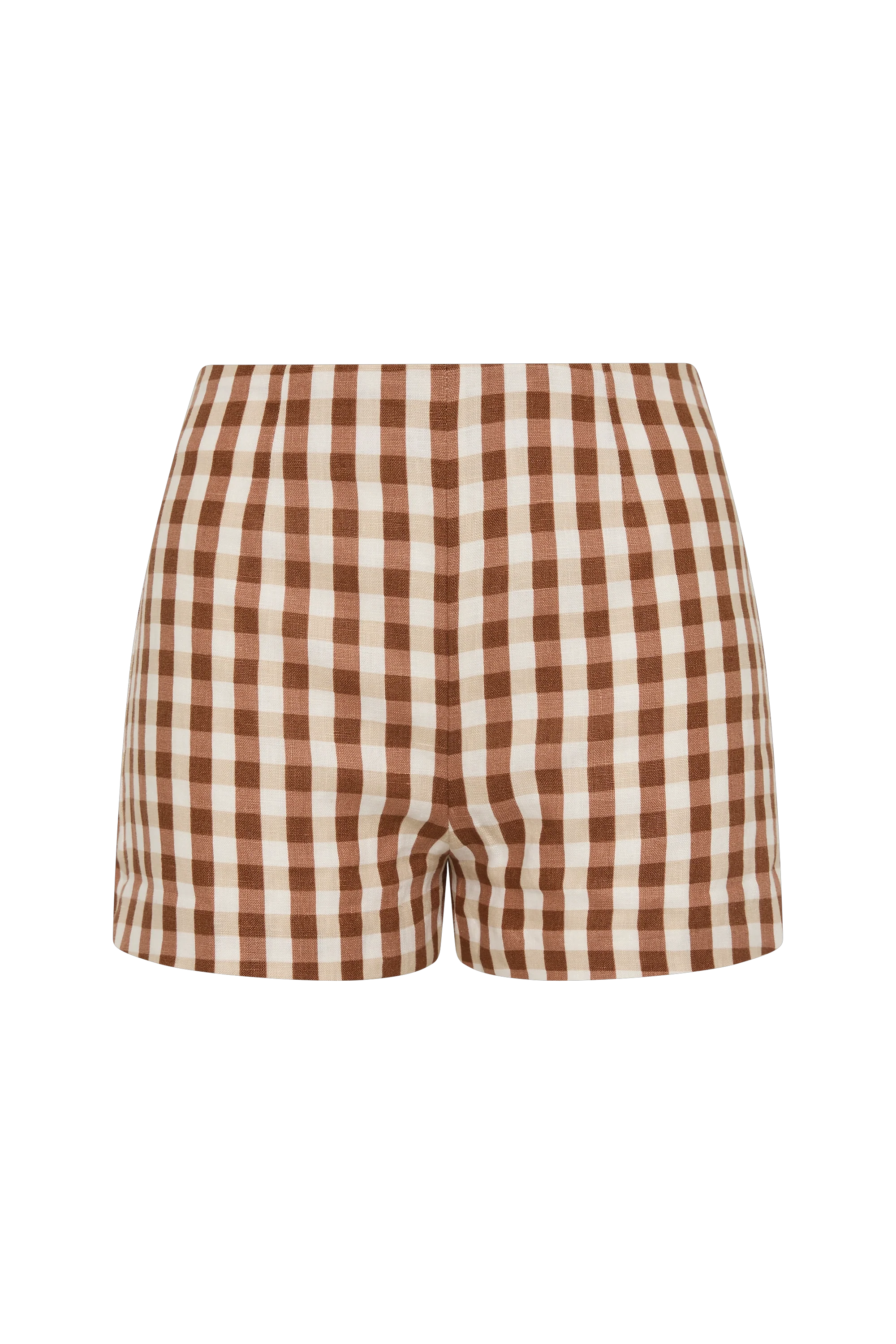 A signature mid-rise mini short, designed from a signature 100% European Flax® linen in a nostalgic gingham print. Intended to sit up on the hips with a straight silhouette that crops short on the leg, they feature a smooth front with a simple zip opening at the back waist. Style with the matching Lila Mini Short for a vintage approach to everyday dressing. This style is true to size.