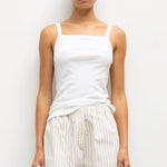 Cut in our body-hugging Nando Baby Rib Cotton, The Nando Square Neck Tank features a straight neckline, medium width spaghetti straps, and a fitted full length. Make it a matching set with the Nando Lounge Pant or mix it with any Yoshi Stripe bottom.