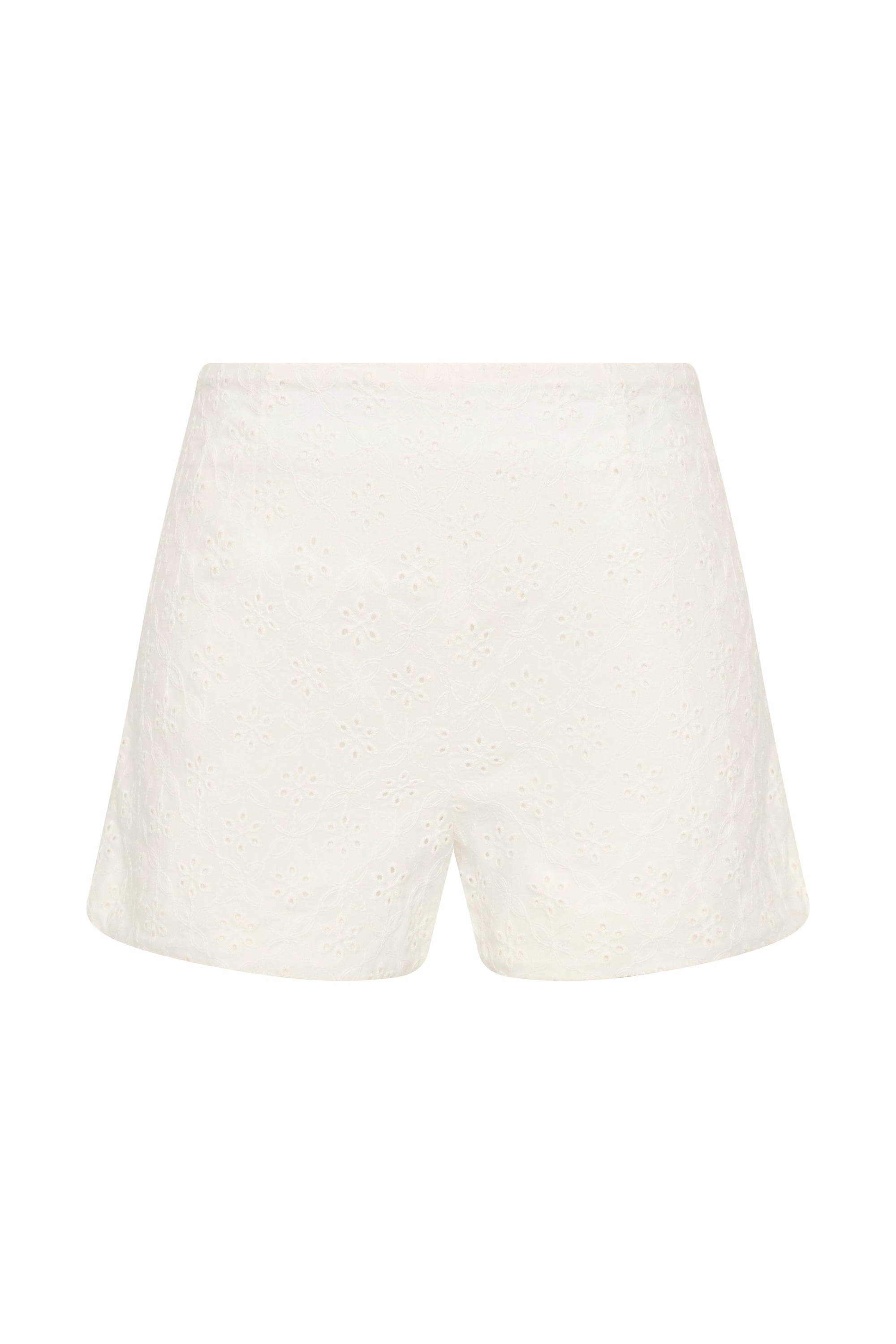 A mid-rise mini short, designed from a uniquely delicate anglaise broderie fabrication in a warm white. Sitting comfortably around the waist, they have a relaxed yet straight fit that flares out slightly at the hem. Style with the matching Olivia Top for summer-inspired set dressing.