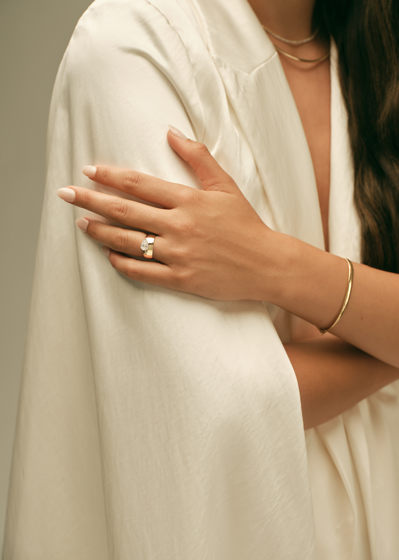 The Porter Cigar Band Collection honors our dear friend Alyvia and her mother. After her wedding, Alyvia lost her mom and wanted to keep her memory close, entrusting us to repurpose the diamond from her mother’s engagement ring.