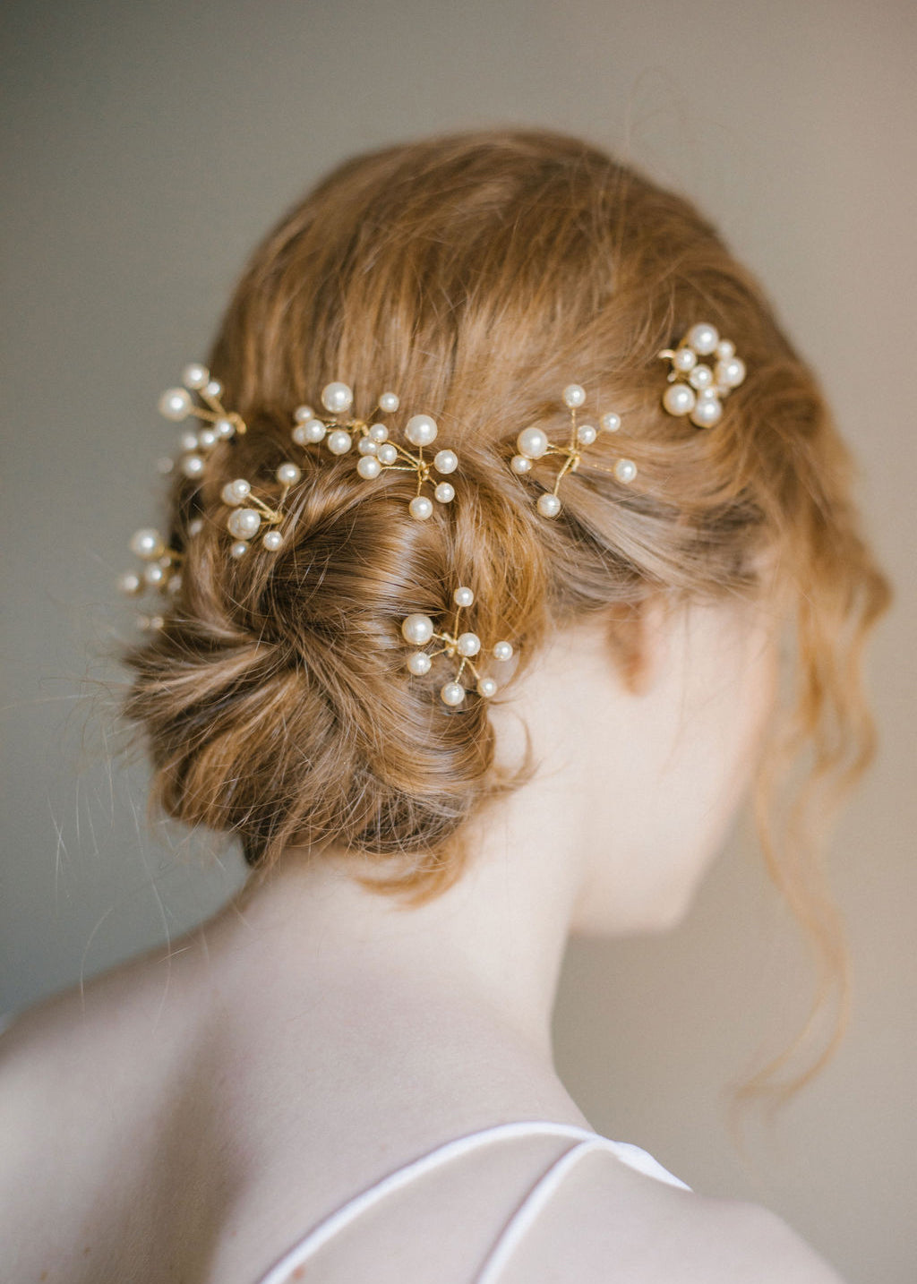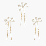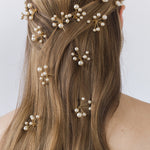 The Primavera Hair Pins were inspired by the ethereal essence of a Botticelli painting. Each pin in this set of three is comprised of numerous Swarovski pearls, which are meticulously strung by hand in our Brooklyn studio, creating a diaphanous spray of pearls with the illusion they're floating in midair. Consider pairing with the matching Primavera Circlet, or mixing with the Perla Bobby Pins. Packaging Dimensions: 6.5 x 6.5 x 1.75 inches Weight: