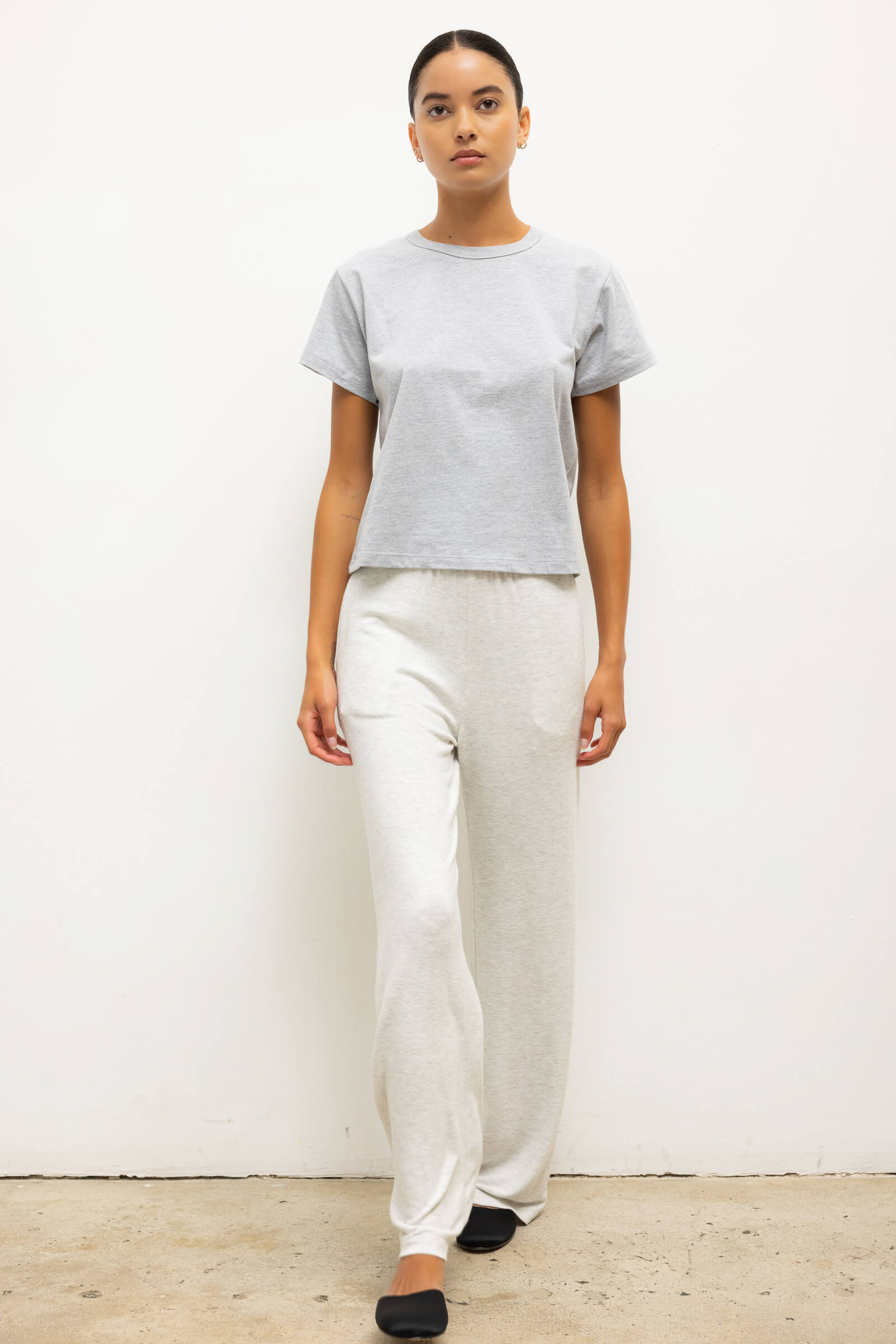 Our no. 1 bestselling classic tee, now in soft, medium toned Heather Grey. A timeless, crewneck short sleeve t-shirt that strikes the perfect balance between a tailored and relaxed silhouette. The Margo is the ultimate year-round, everyday basic.