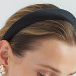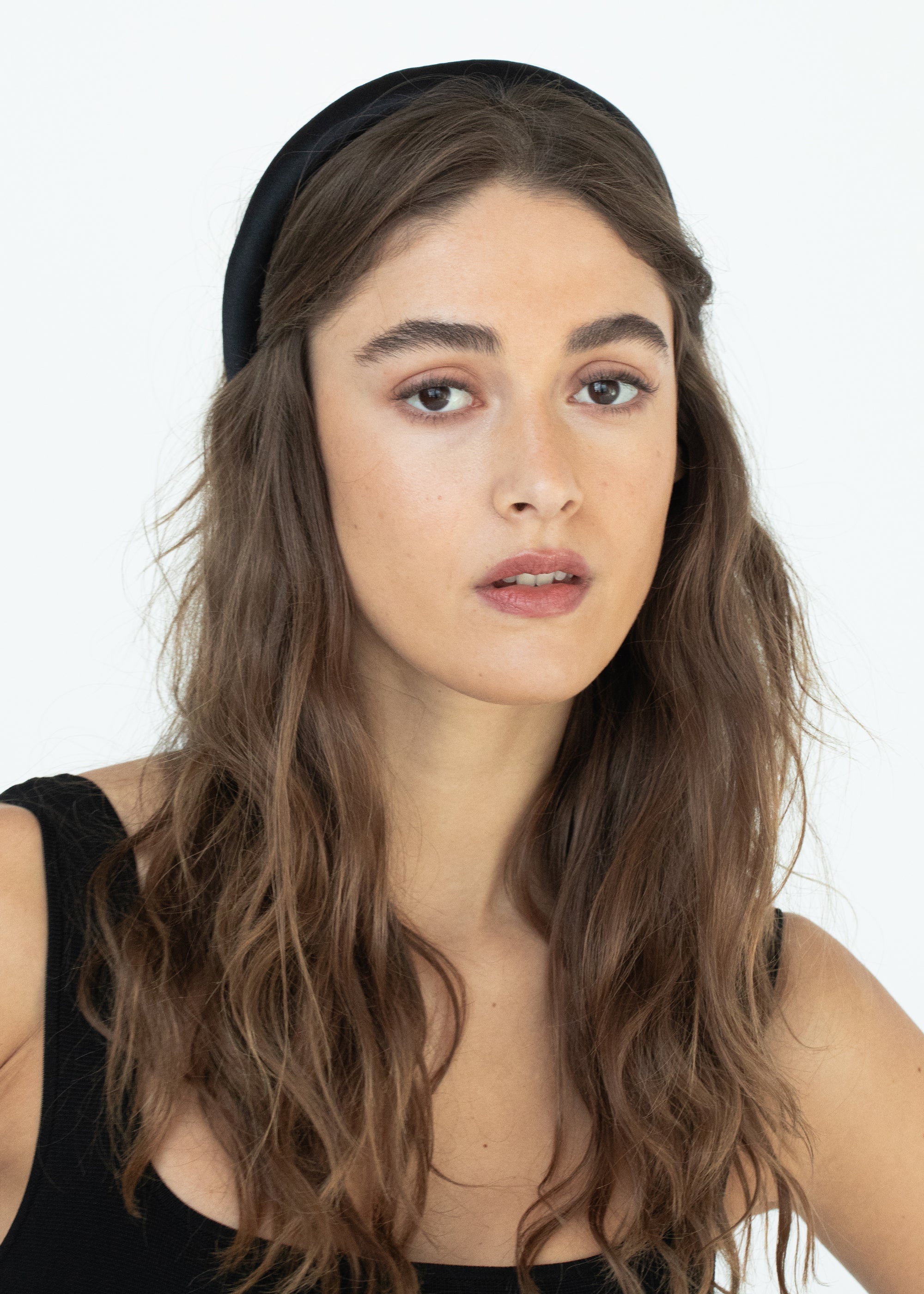 This is how Jennifer Behr does the classic padded headband, one of our best-selling silhouettes. This Tori Headband is crafted from silk, creating a rich luster. We take fit seriously, and our headbands are wear-tested to be comfortable all day. Dimensions: 1 inch width, 1 inch height. Overall 5.9 x 5.5 inches