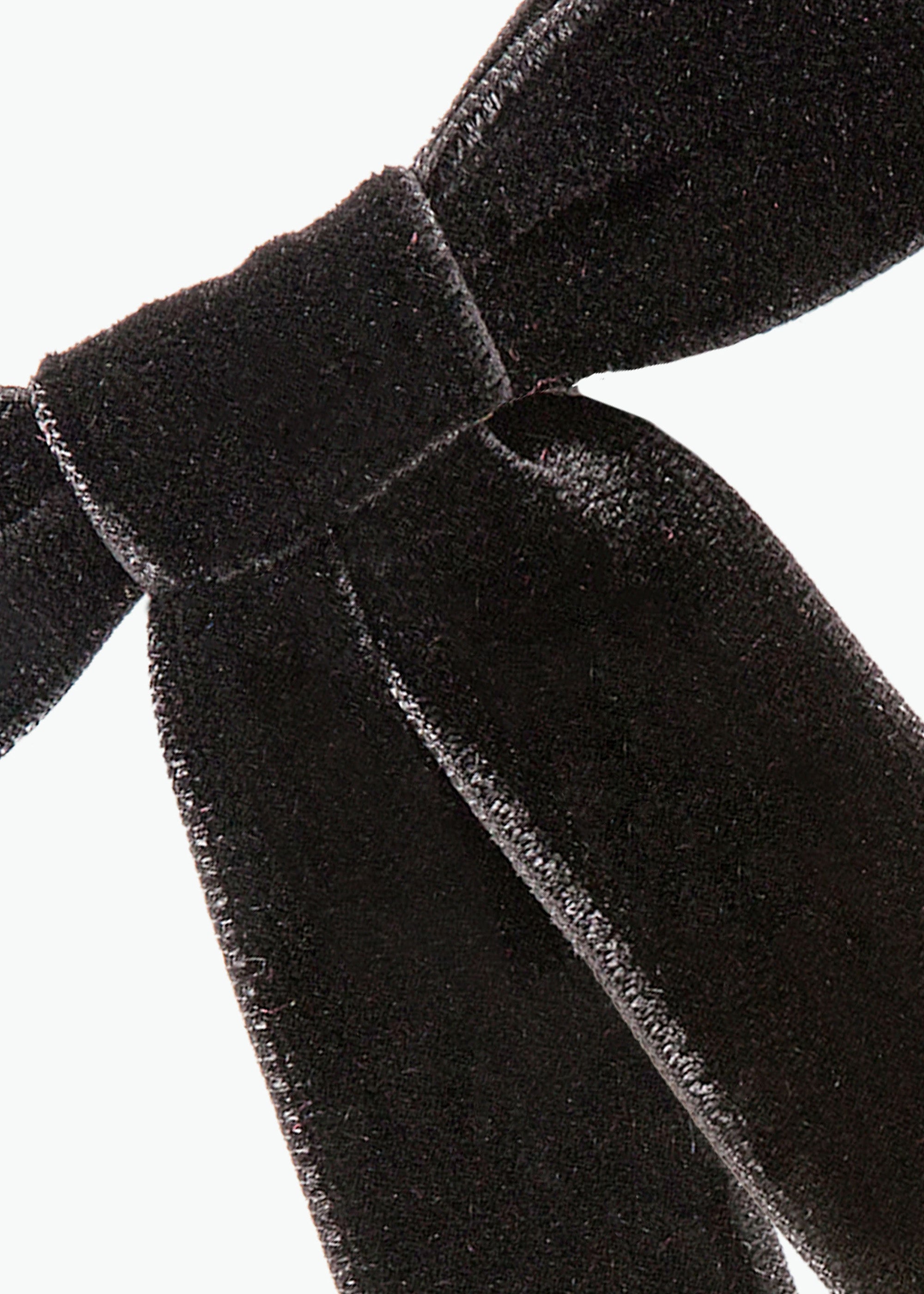 The bow that started it all: Our original Velvet Bow Barrette ignited a craze when it first launched, and it's been a best-seller ever since. Each bow is meticulously sewn by hand in our Brooklyn studio, and features a French barrette closure, making it easy to wear a multitude of ways: in the back of the hair, swept to the side, above a ponytail, and more. This bow is a hair wardrobe essential, and our Wide Velvet Bow Barrette will provide a more dramatic finishing touch. Dimensions: 3.5 x 6.5 inches Weight: 7g