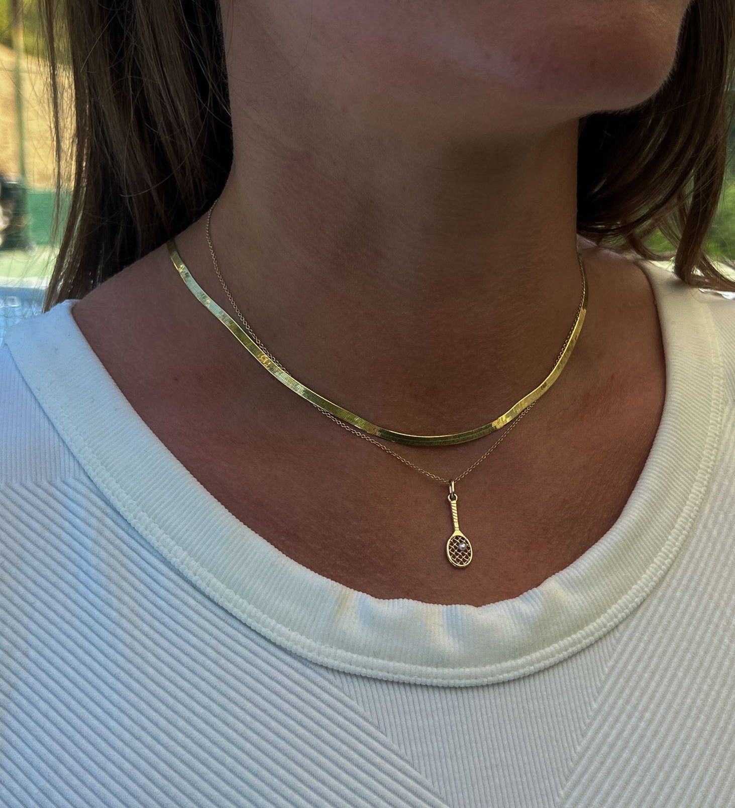 Kinn x Sunset Tennis Club Ball And Racquet Necklace Pearl