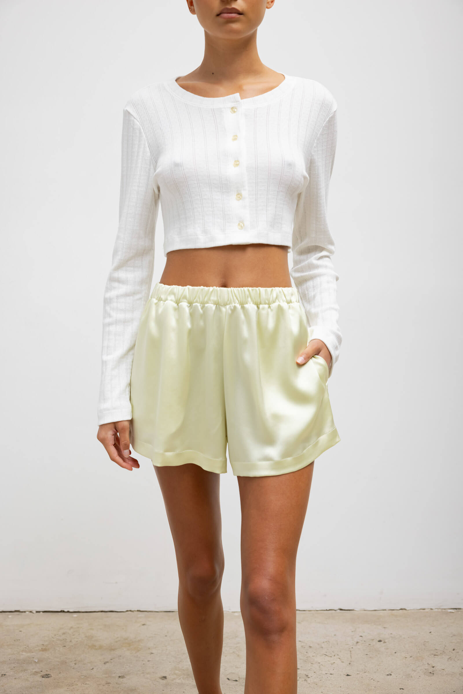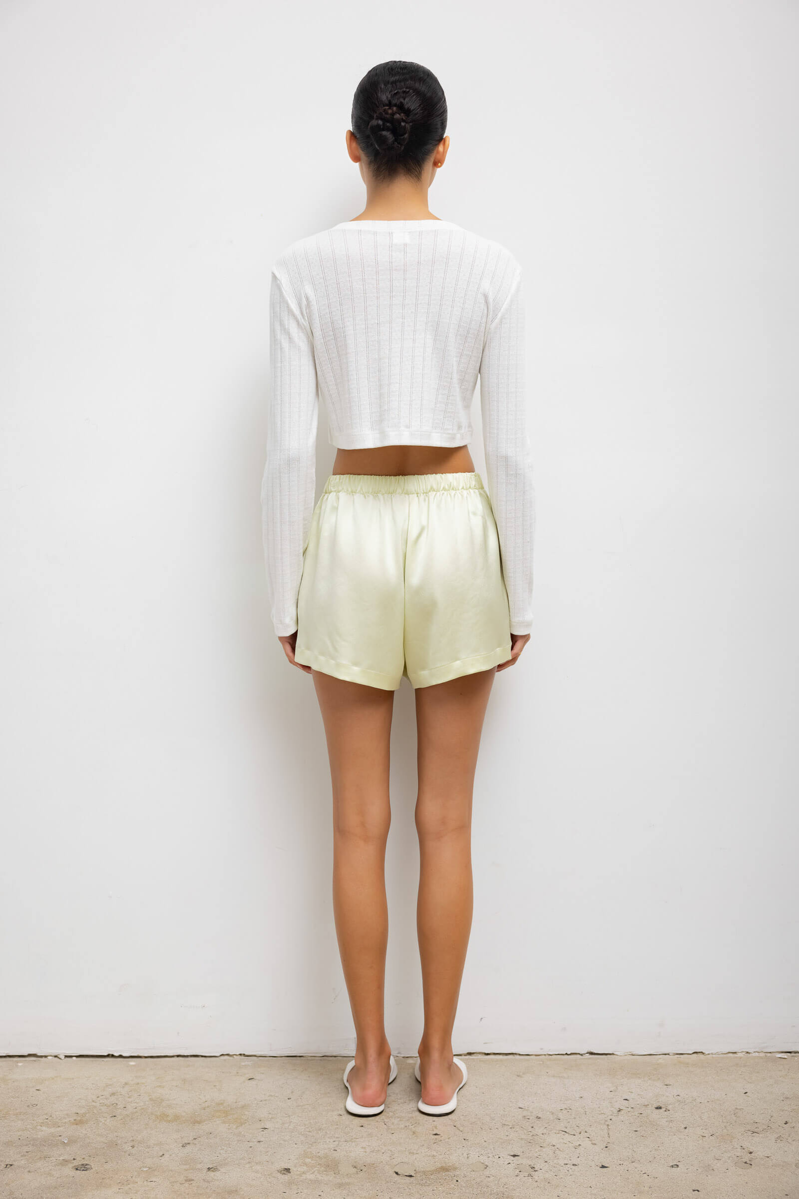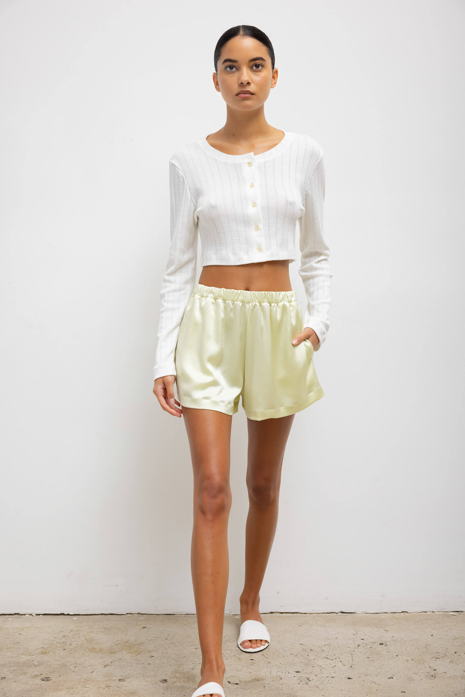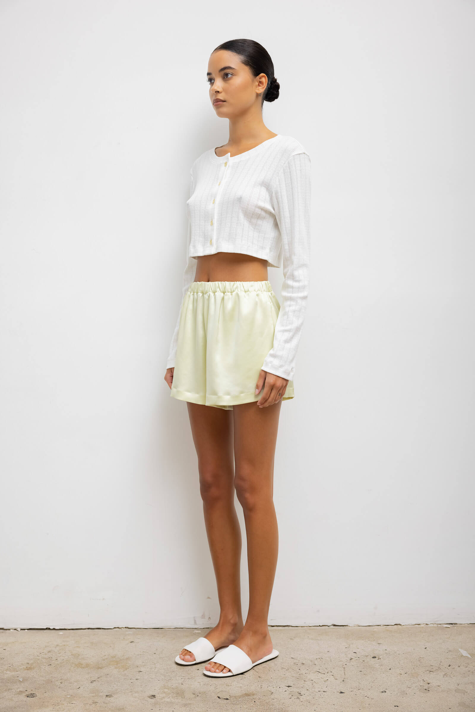 Cut in our Japanese-crafted Barb Satin, the Barb Boxer Short is our signature feminine take on a mens' sleepwear classic. This boxer short features a subtly flared leg opening, comfortable elastic waistband and side slit pockets.