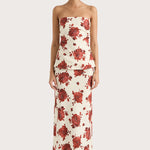 A signature FAITHFULL silhouette designed from 100% European Flax® linen fabrication in a French-inspired garnet red and cream floral. A high-rise midi skirt that sits high on the hips with a bias cut that falls straight down the body, cropping just above the ankles with a slight flare. Style with the Alexa Top for summer set dressing.