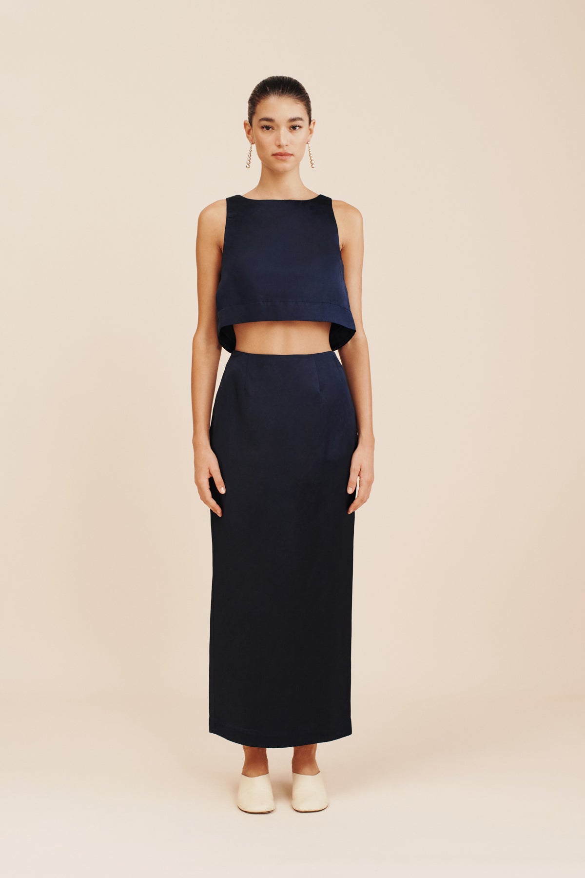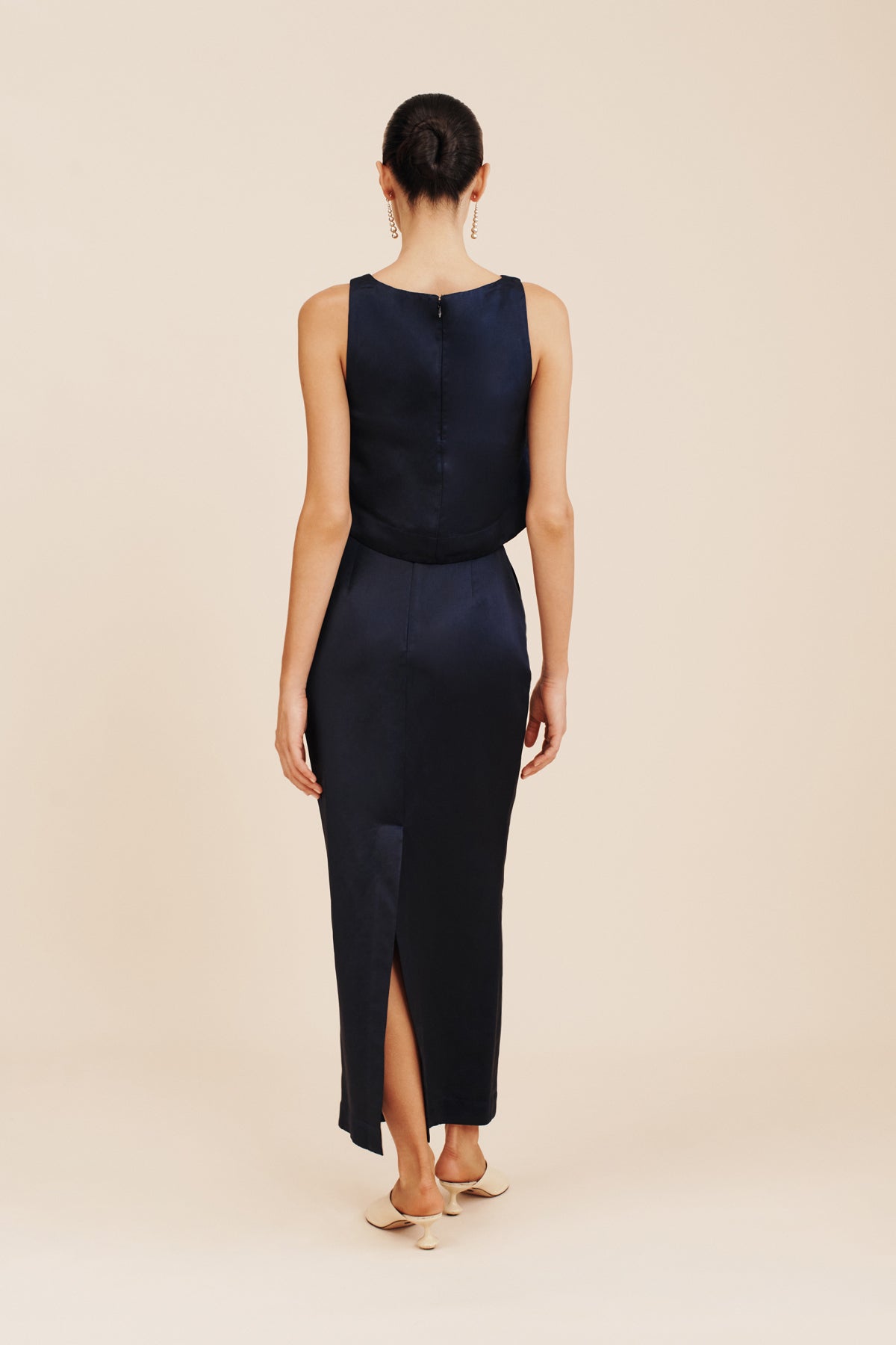 Simple yet elegant, the Gigi Pencil Skirt has a glossy satin finish, making it perfect for evening wear or special events. Designed to sit high on the waist, it falls to an elegant maxi hem and has a split at the back for movement. Styles yours as a set with the coordinating Joy Crop Top.