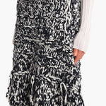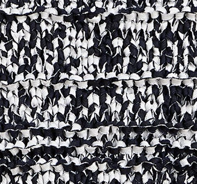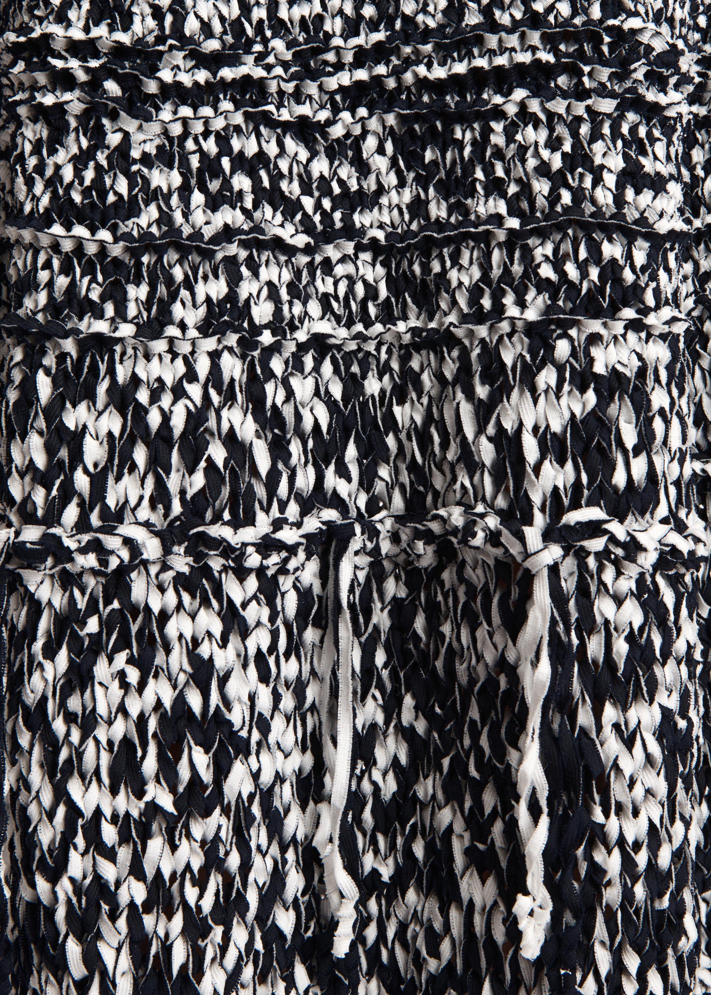Knit by hand in New York, this barrel-shaped silhouette gains structure and texture from cotton tape yarn knit that doubles as streamer-like fringe. Slips on.