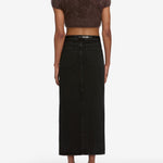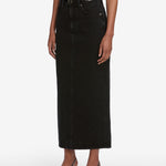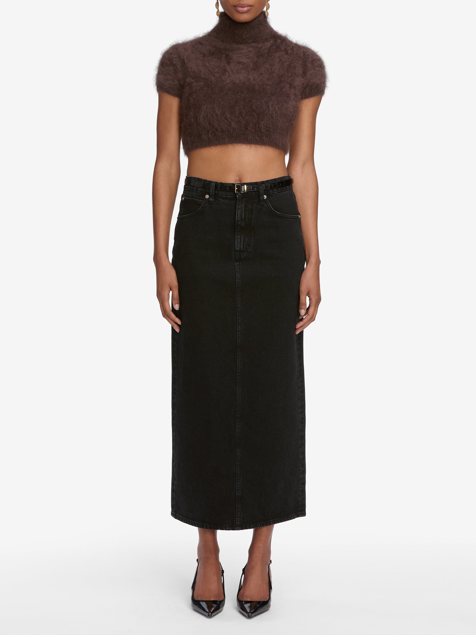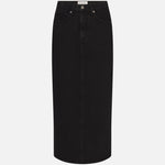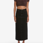This minimalist column skirt is cut from non-stretch 100% cotton denim for a clean, architectural feel. A front slit adds movement and keeps it quietly undone.