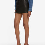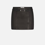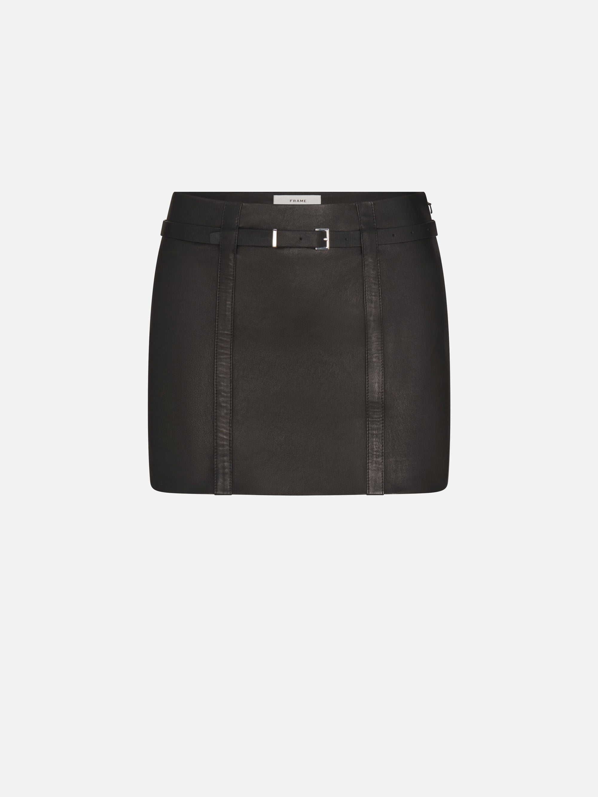 Your perfect black leather miniskirt, crafted from 100% lamb leather. With a slim self belt inspired by mod fashion and featured throughout the collection.