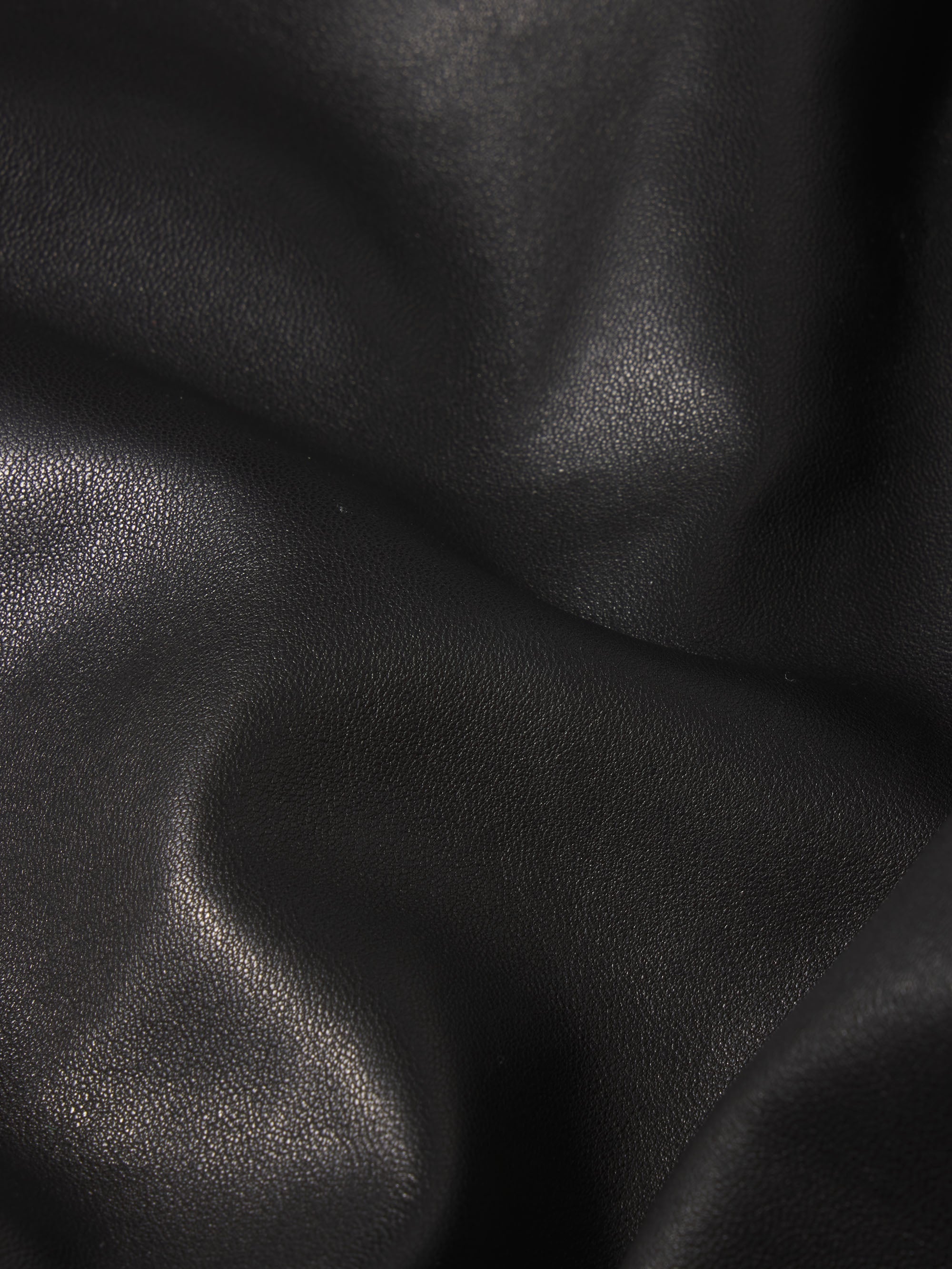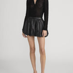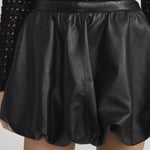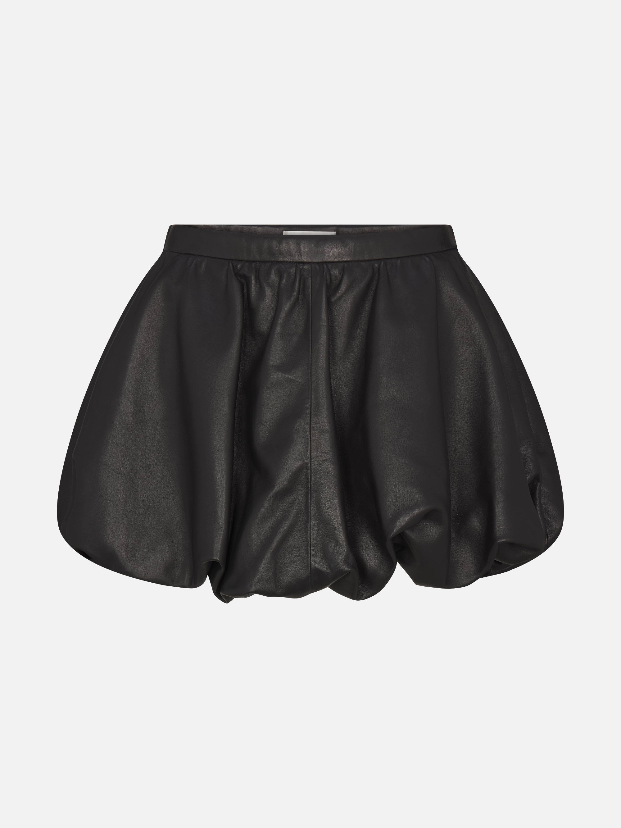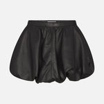 This black 100% lamb leather skirt has a chic bubble shape—filled with light tulle for volume. Mini length, with a hidden zip closure.