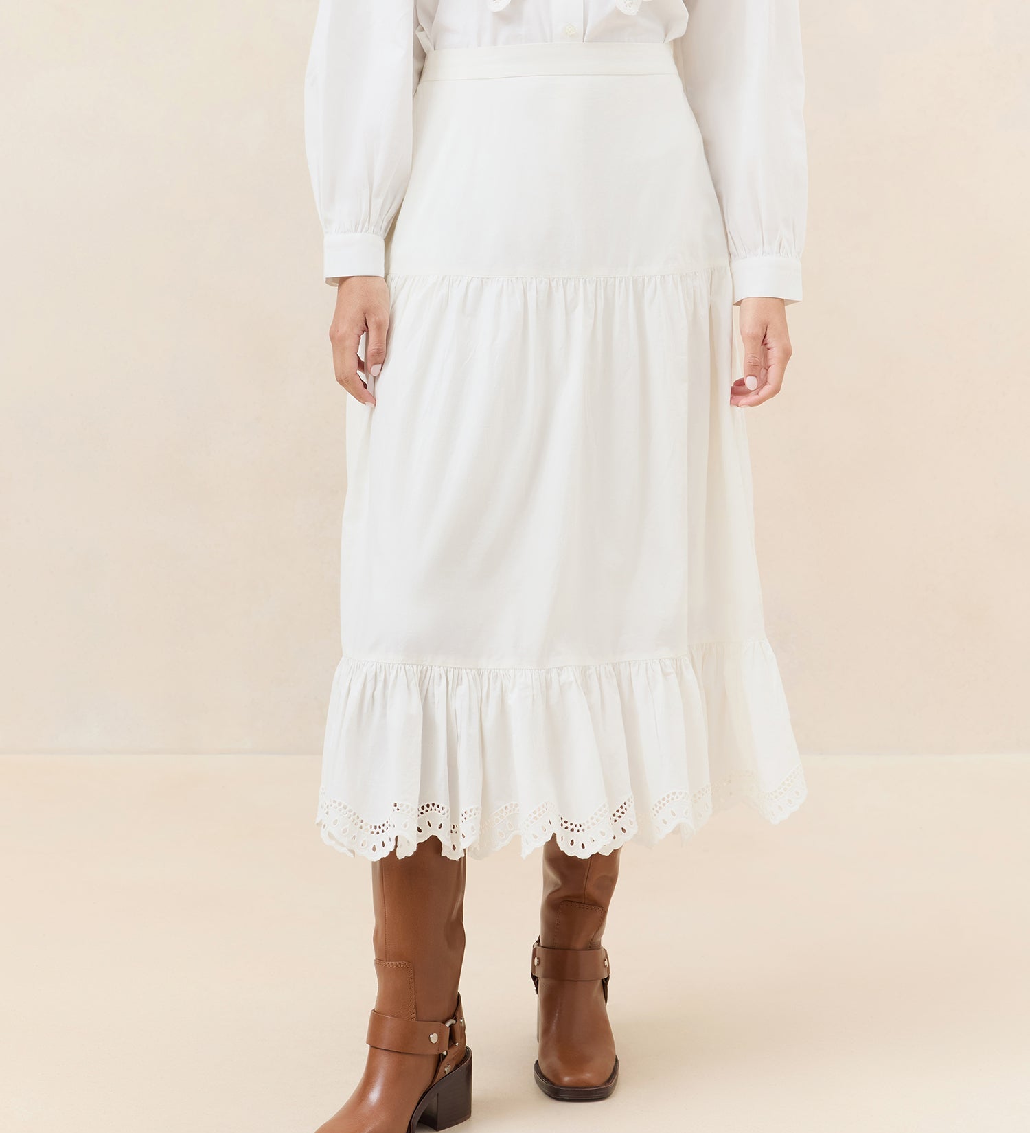 Loeffler Randall - Viola Broderie Trim Midi Skirt