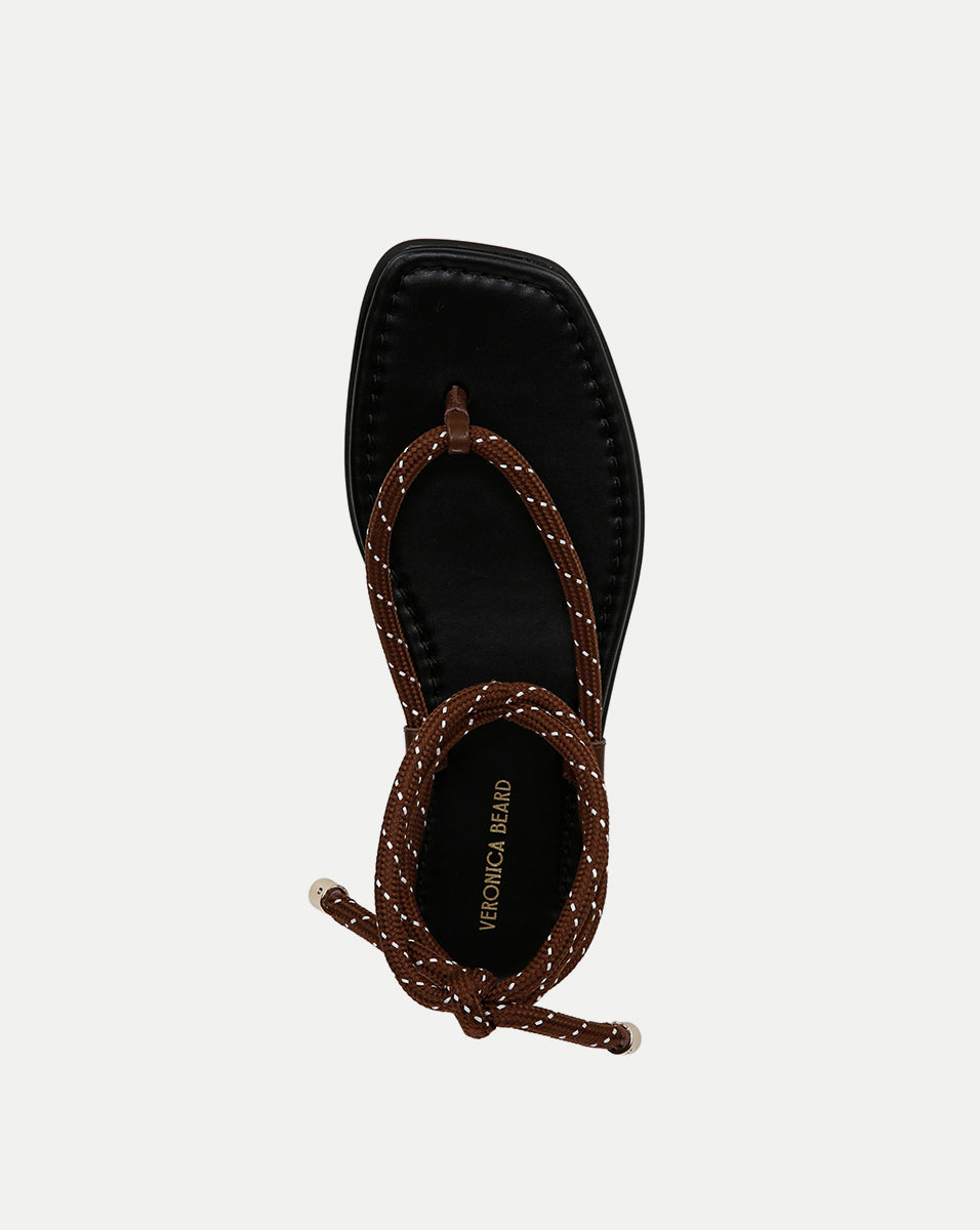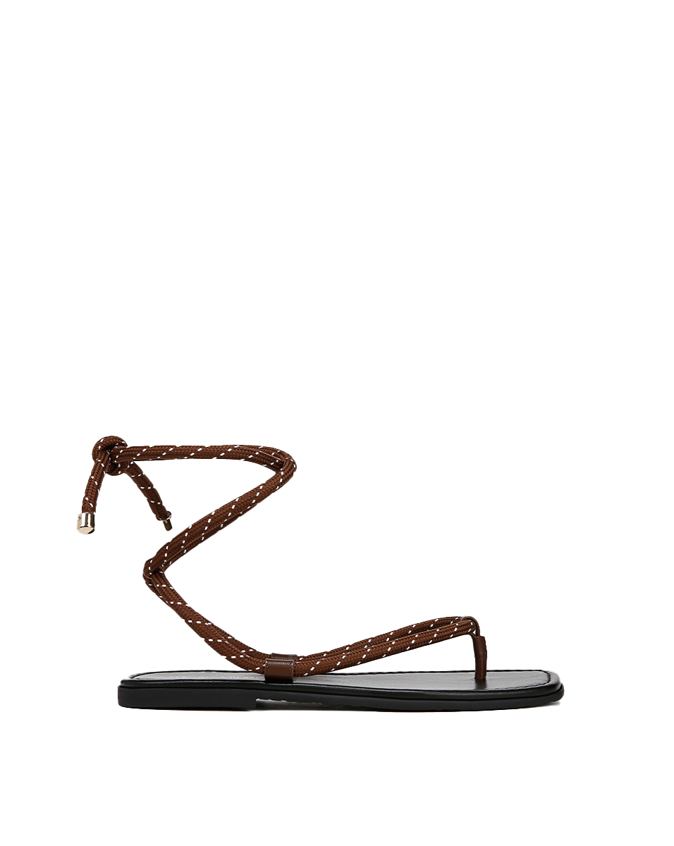 We reimagined the thong sandal with elastic bungee-cord straps that wrap elegantly around the ankle. Finished with a leather footbed, it's the ultimate in sportif chic. Consider this your new summertime go-to—perfect for beach, boardwalk and weekend errands.