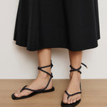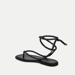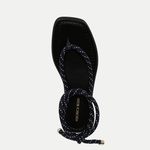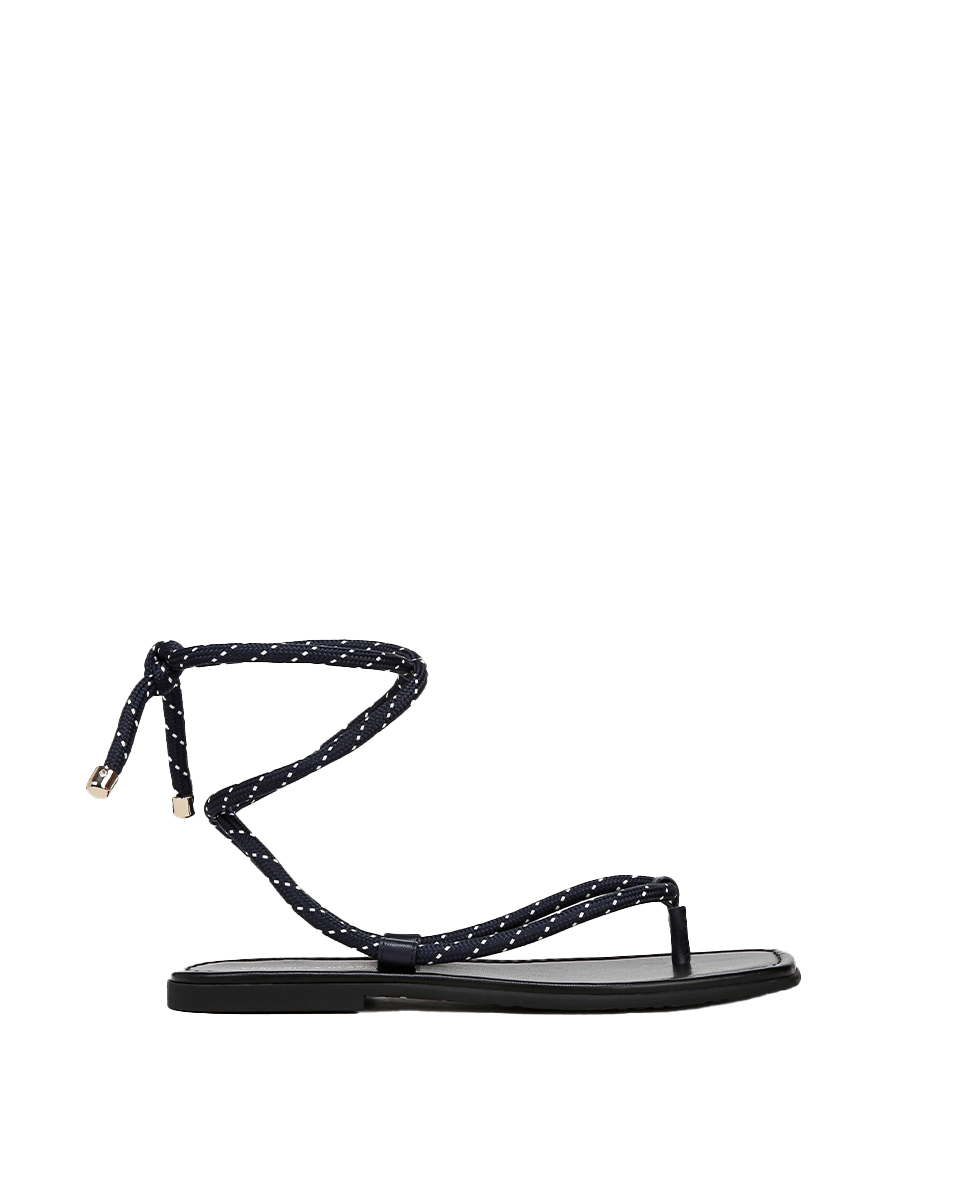 We reimagined the thong sandal with elastic bungee-cord straps that wrap elegantly around the ankle. Finished with a leather footbed, it's the ultimate in sportif chic. Consider this your new summertime go-to—perfect for beach, boardwalk and weekend errands.