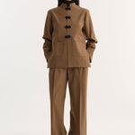 The signature Róhe 'Marie' jacket is now reimagined in a beautiful seasonal tone crafted from soft pure wool. Wide sleeves and traditional pankou closures bring an elevated elegance to the standout design. Patch pockets and a flowing silhouette make it as functional as it is striking.