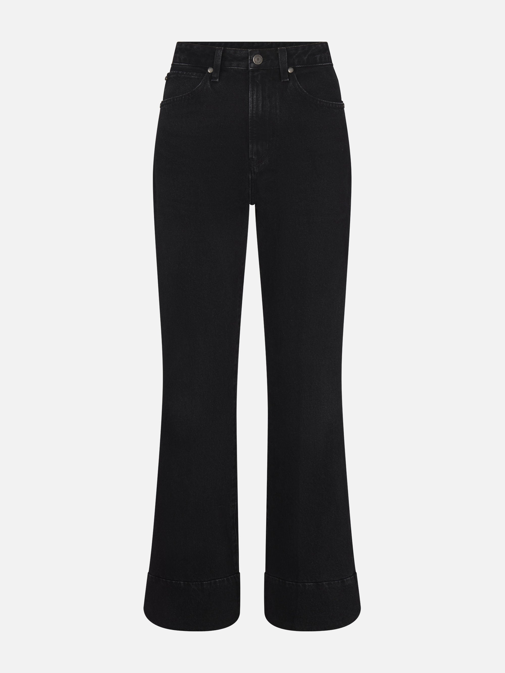 This black non-stretch jean has a bootcut silhouette with a bold seamed cuff. Style it with The Atelier Arch Jacket for the ultimate elevated, innovative denim uniform.