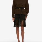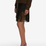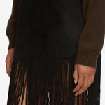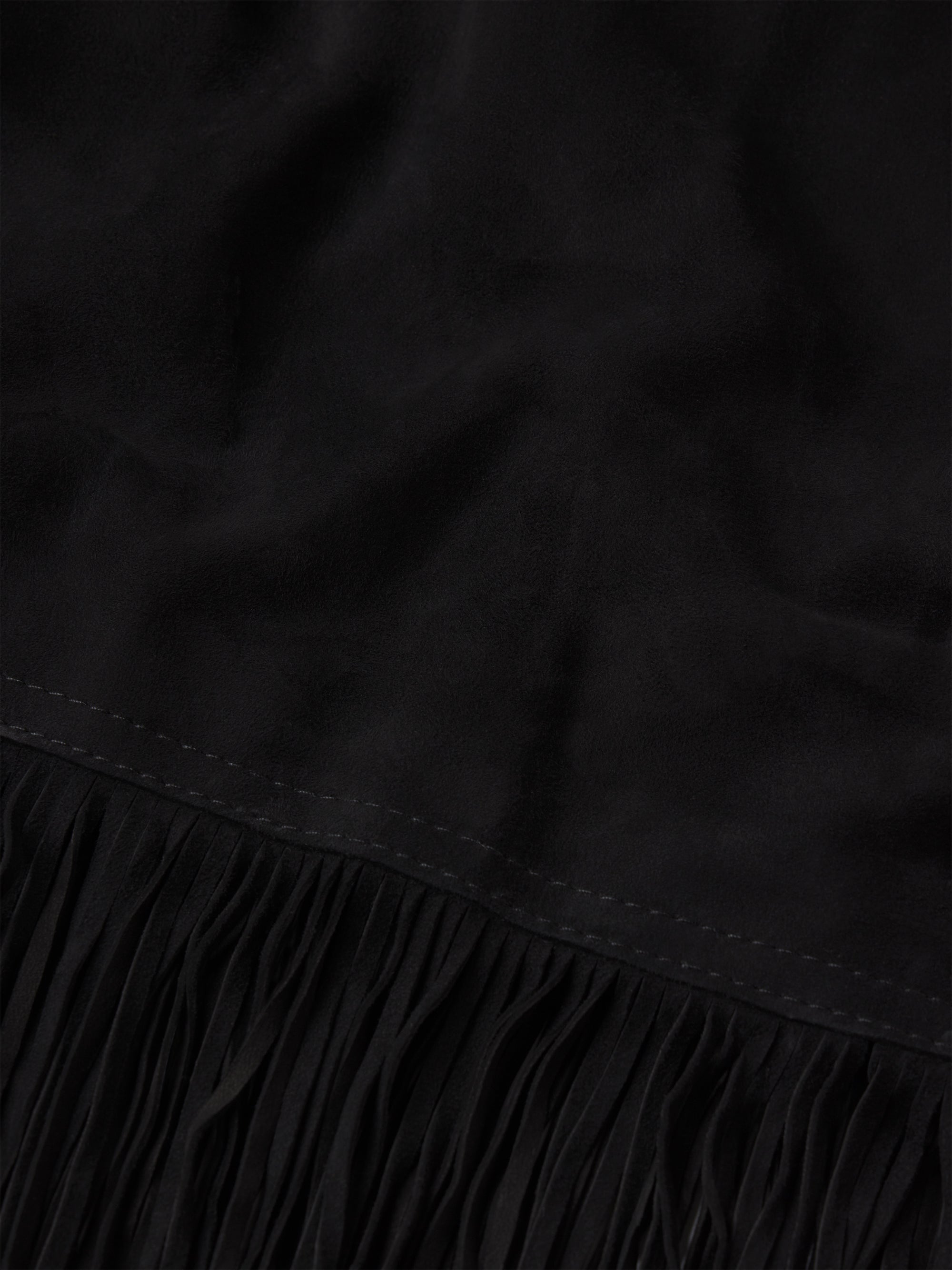 A standout piece in soft suede, finished with fringe details that nod to classic Western styling. Balance it with a cashmere sweater or crisp shirting for a look that's dramatic yet refined.
