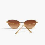 Handcrafted in Italy, these sunglasses mark the debut of metal frames in the collaboration of KHAITE and Oliver Peoples. The cat-eye silhouette is distinguished by a boldly upswept lens, its dark brown hue selected as an assured complement to gold frames. The shape of the custom temples, like the distinctive corewire of the acetate styles, is inspired by the hardware of KHAITE handbags. The temples are also tipped with alternating logos. Each pair includes a signature lipstick red case and a drawstring pouch that doubles as a lens cloth.