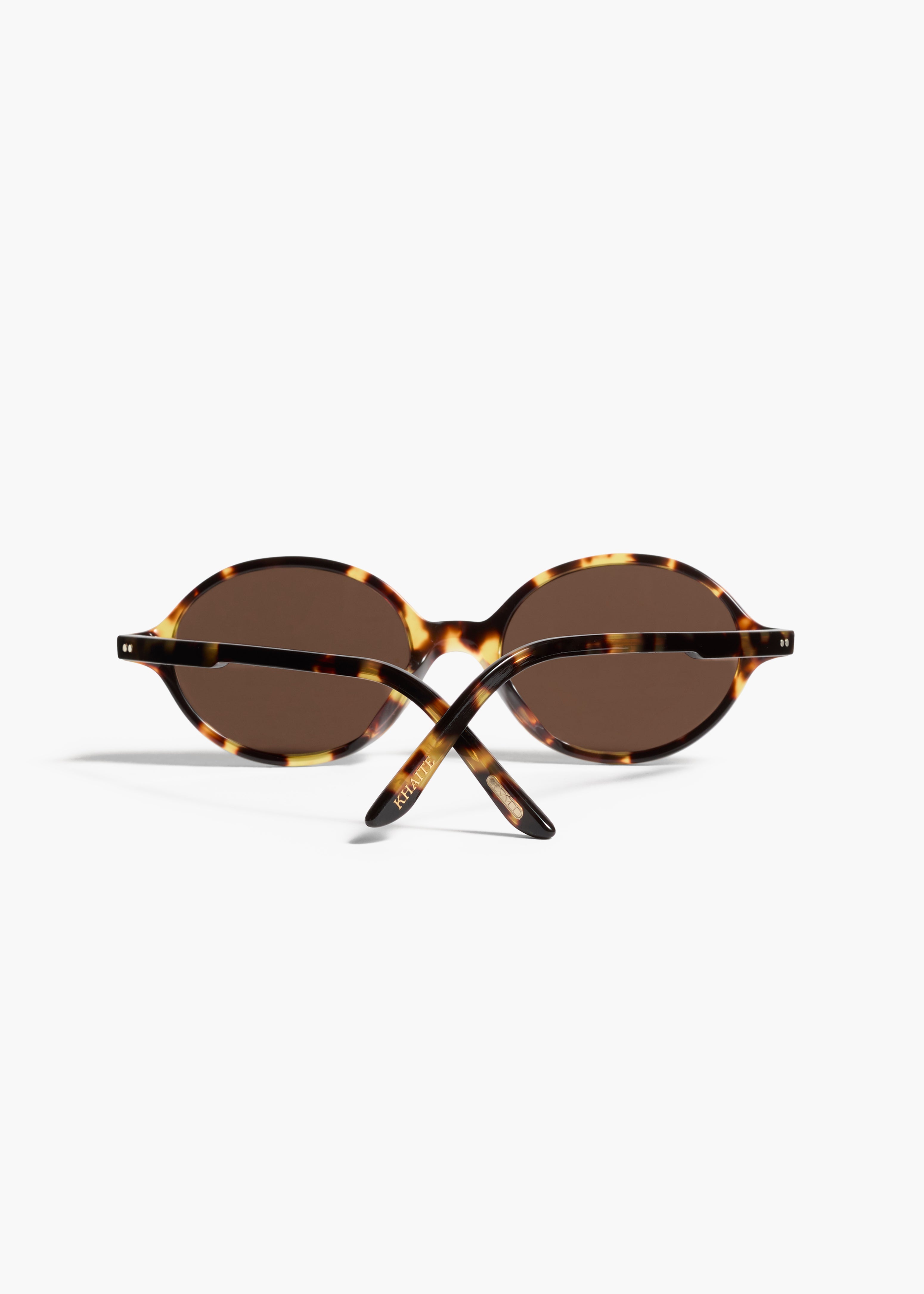 In collaboration with Oliver Peoples, the vision of KHAITE extends to eyewear. Handcrafted in Italy, these sunglasses embody serene audacity. The well-rounded silhouette looks to the turn of the twenty-first century. Tipped with alternating logos, the temples feature shooting corewire inspired by the hardware of KHAITE handbags. Each pair includes a signature lipstick red case and a drawstring pouch that doubles as a lens cloth.