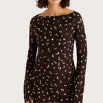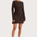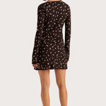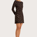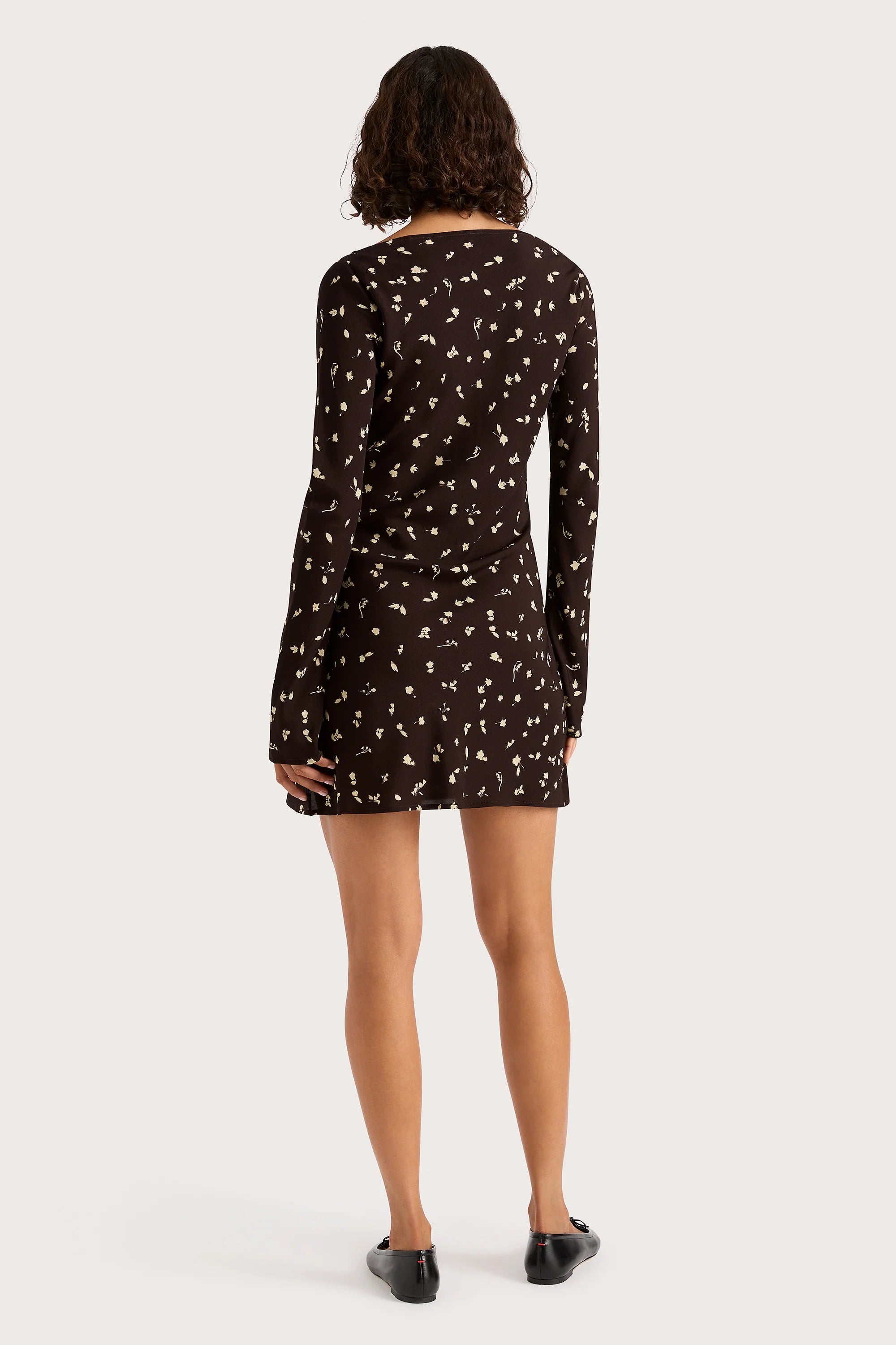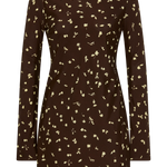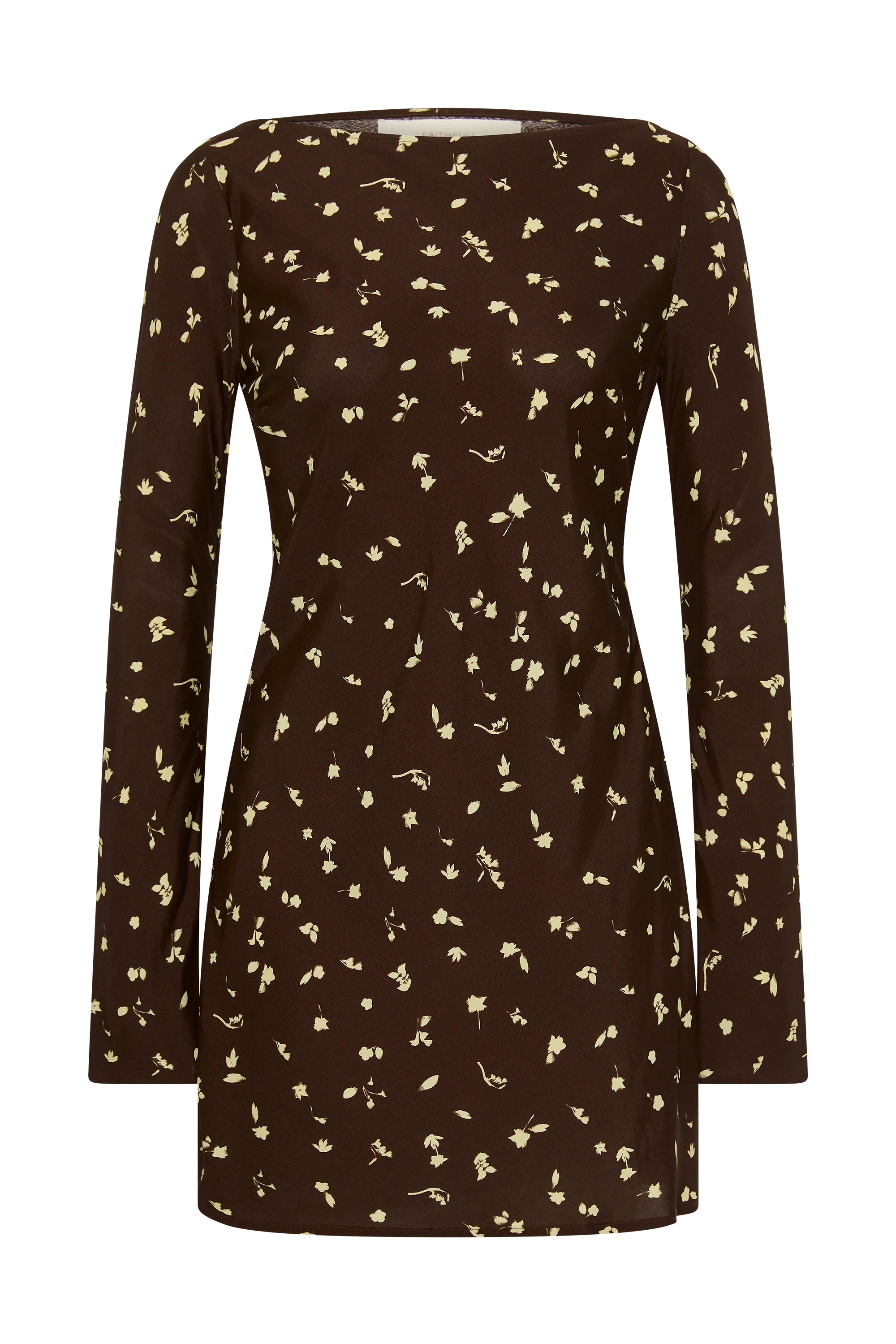 A feminine-style mini dress with a semi-fitted yet relaxed silhouette that falls in line with the body. Designed in a a rich chocolate brown hue with a subtle micro floral motif, it offers a boat-style neckline with long sleeves and a soft skirt. Designed with the changing seasons in mind, it is a shorter iteration of the Lilou Maxi Dress. Pare back with tonal accessories.