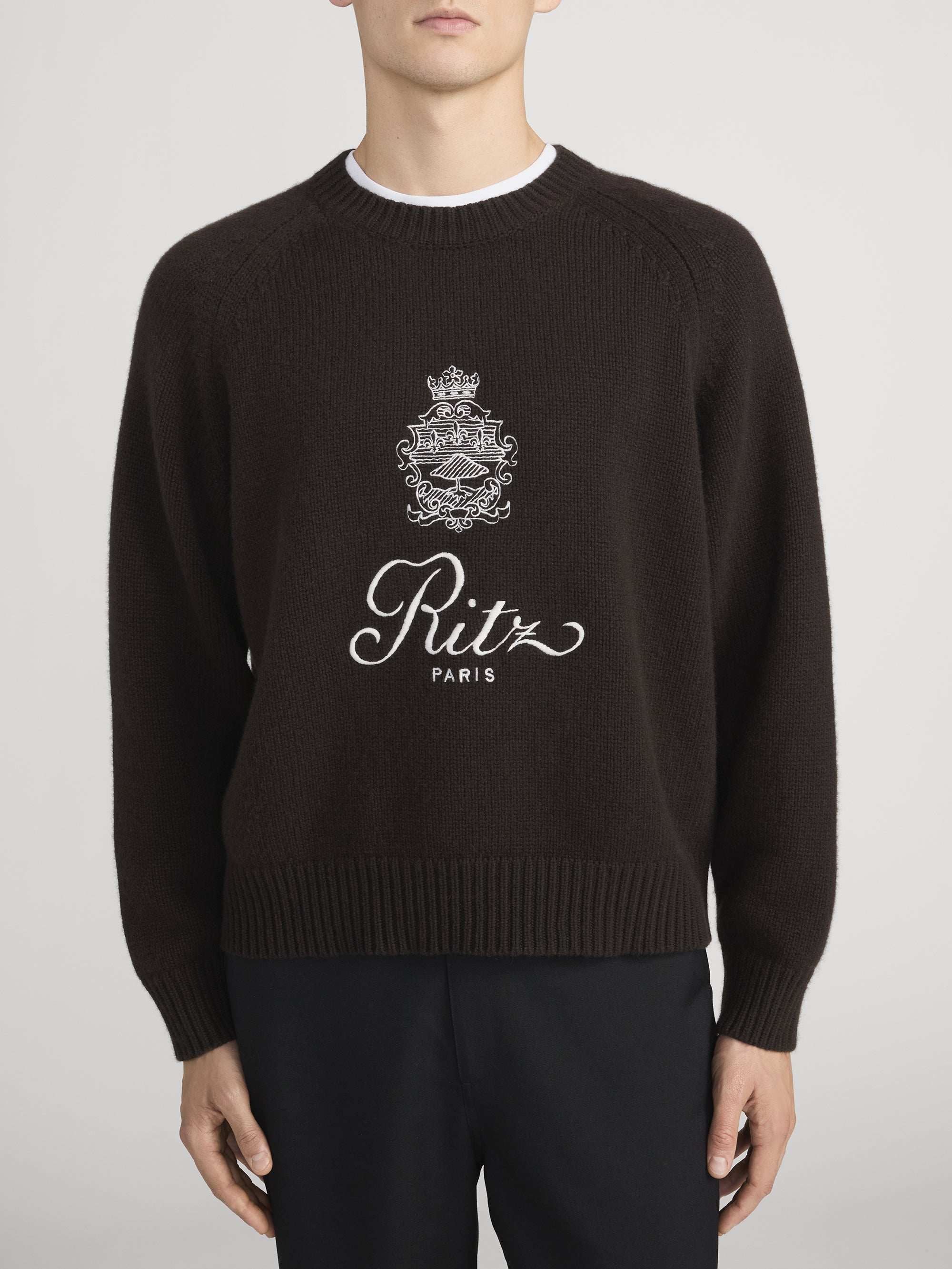Knit from 100% cashmere, this FRAME x Ritz Paris sweater is the epitome of understated luxury, featuring the hotel’s iconic embroidered crest and logo across the chest. A timeless layer designed for both comfort and quiet sophistication.