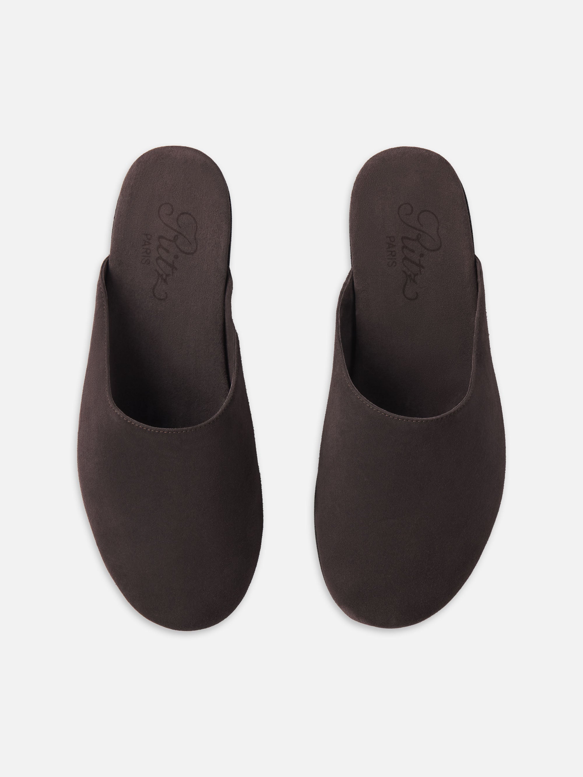 FRAME - Ritz Unisex Suede Mule -- Chocolate Brown