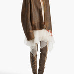 Khaite - Ruban Jacket in Dark Brown Distresed Leather
