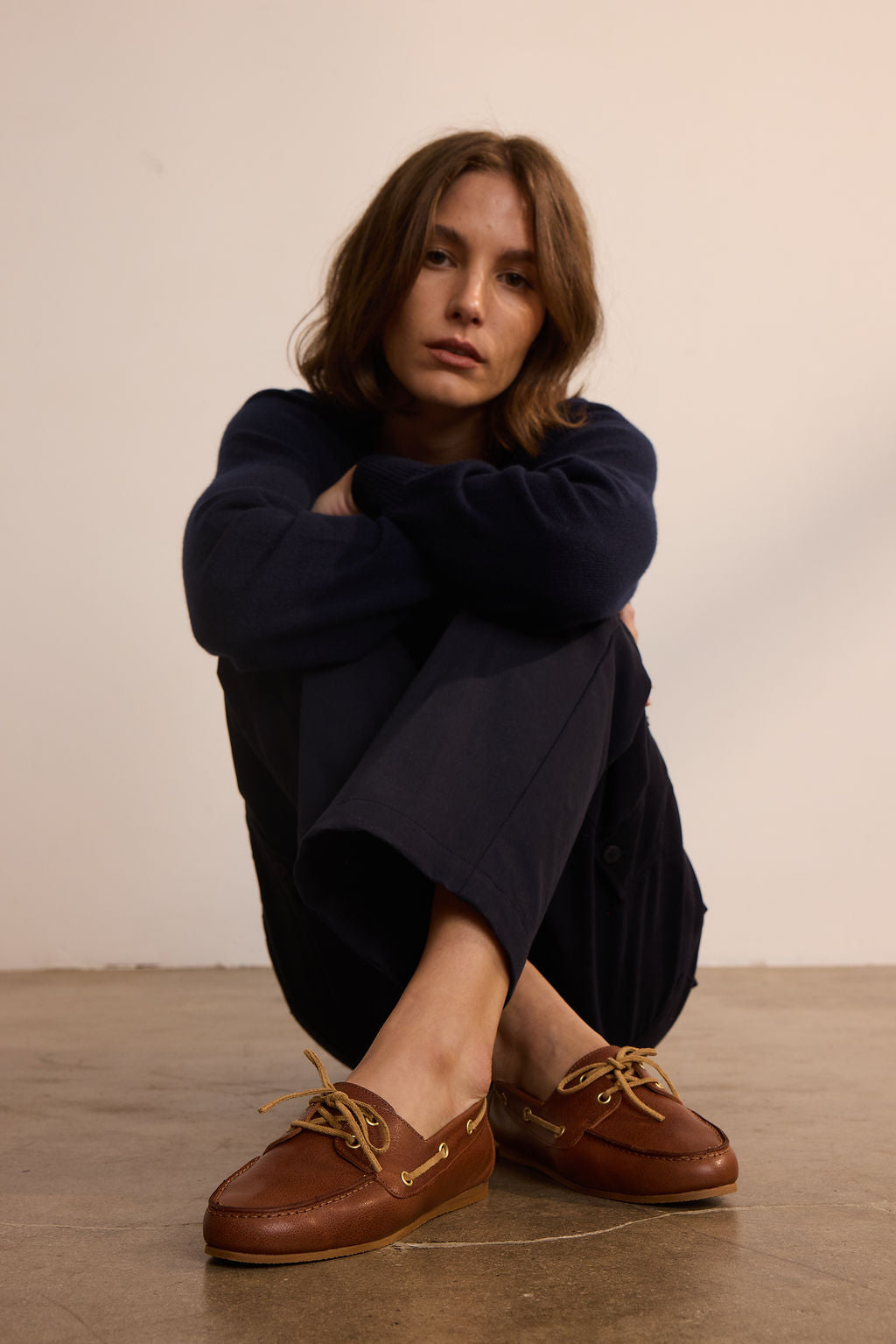 Inspired by classic nautical shoe styling and combined with our Signature penny loafer fit and feel. Handmade in Italian Unlined Buffalo, hand-waxed for a depth of color and sheen that gets better with wear. Fashioned with a tan crepe rubber sole. Handmade in Tuscany, in an old world family style factory.