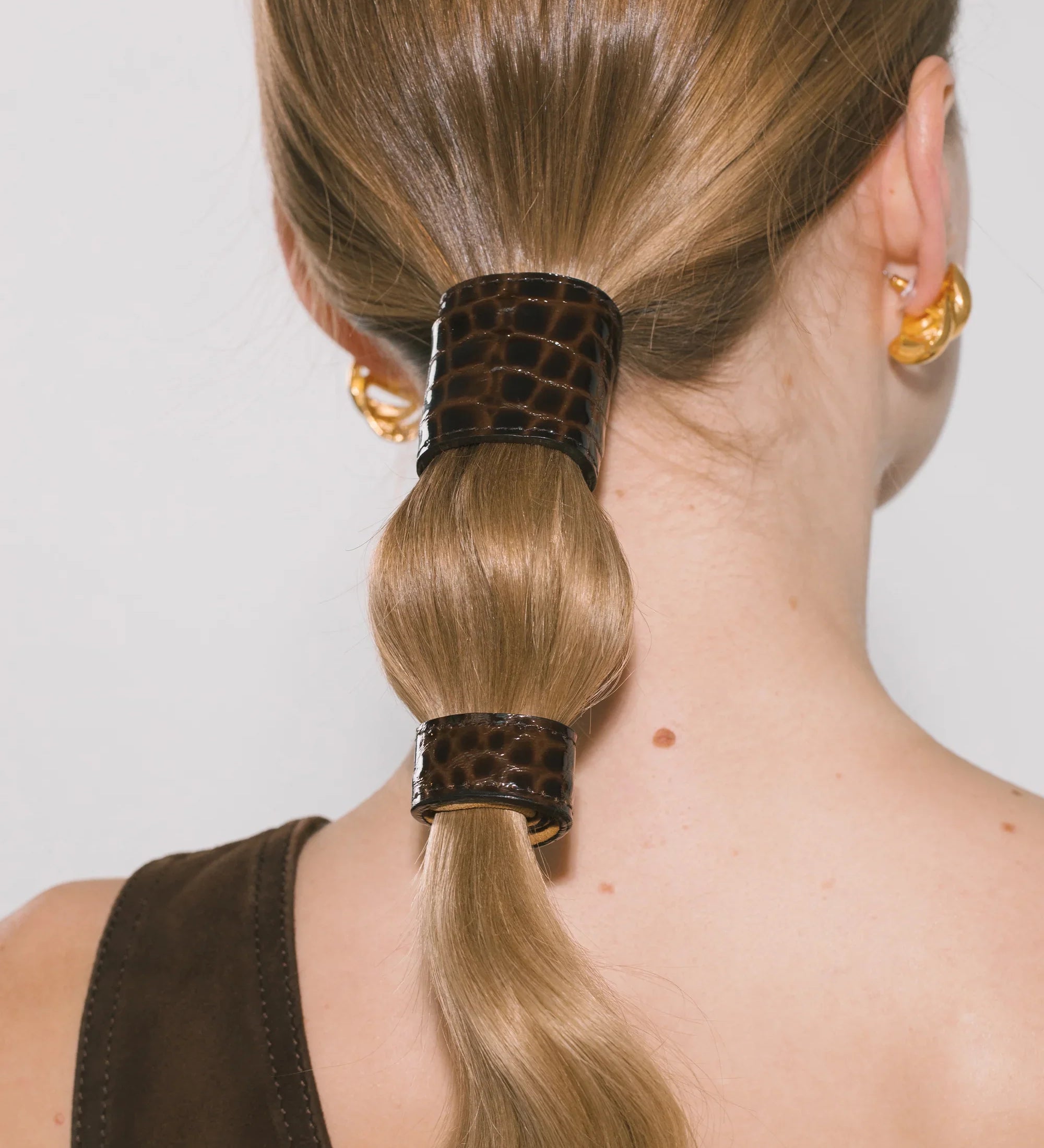 Jennifer Behr - Embossed Leather Ponywrap -- Brown Croc