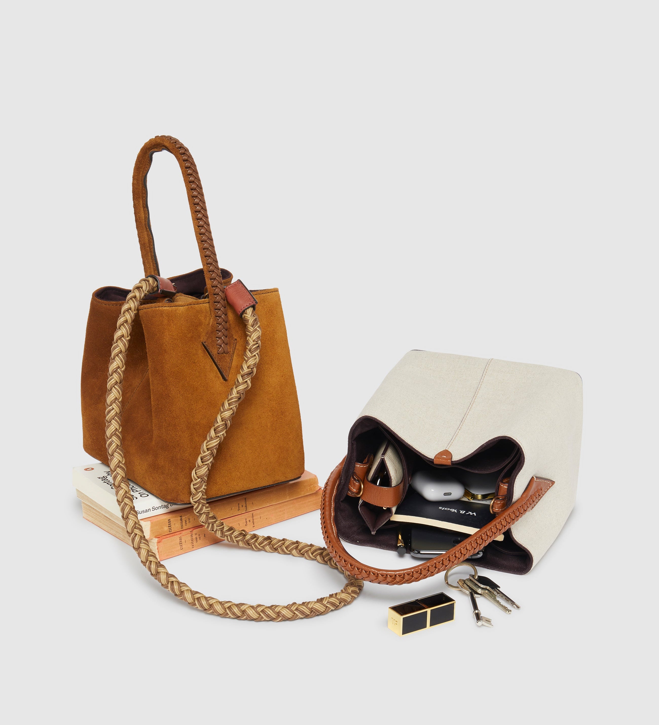 Khaite - Small Augustina Crossbody Bag in Dark Brown Suede