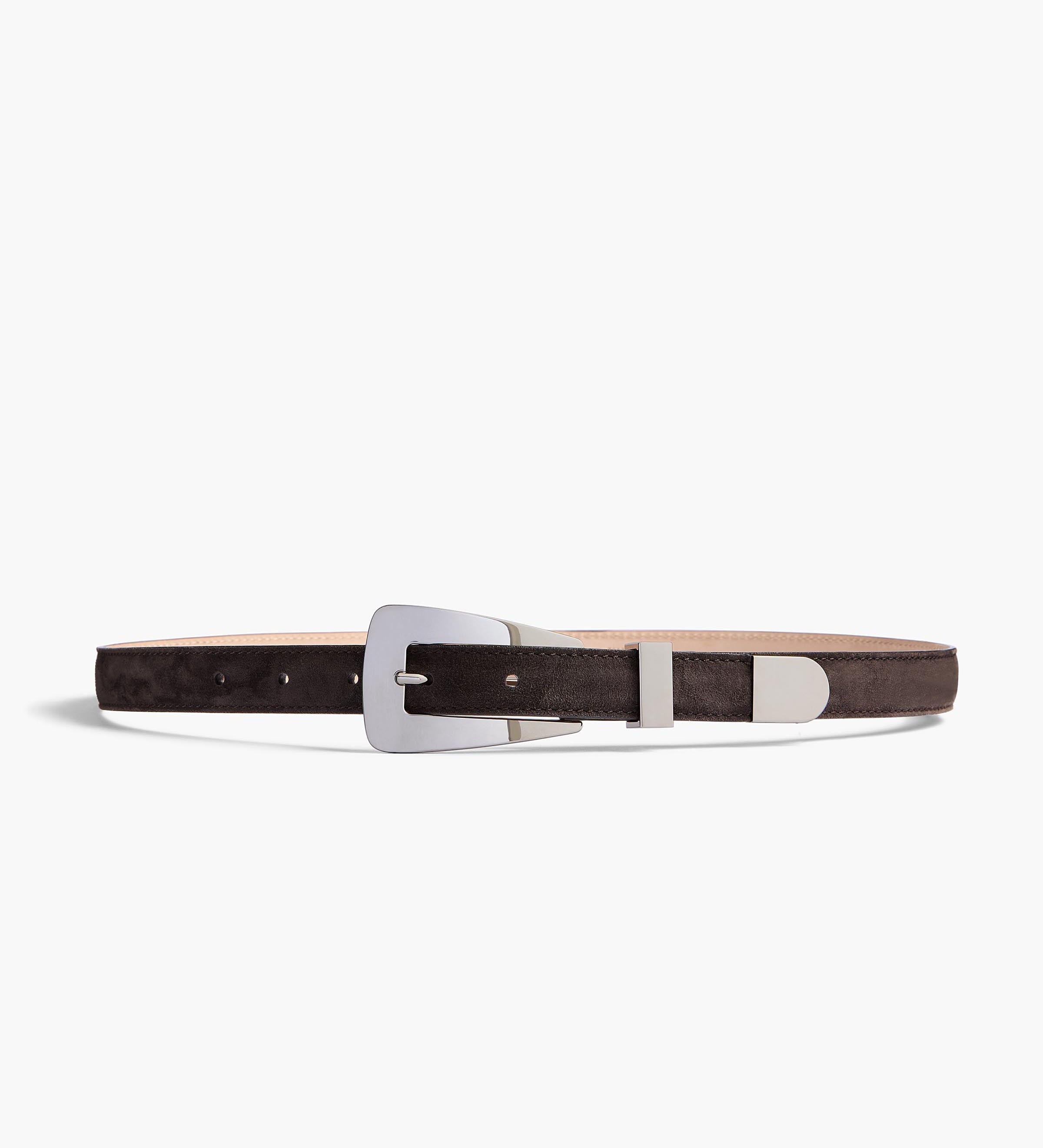 Khaite - Small Lucca Belt in Dark Brown Suede with Silver