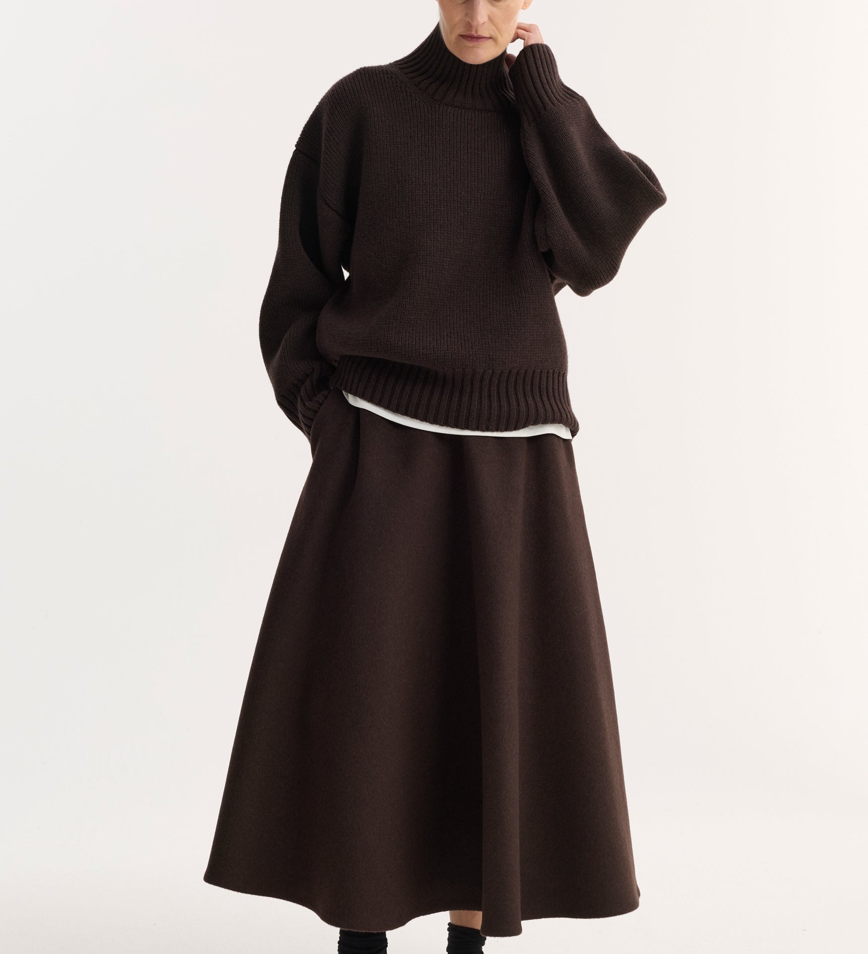 ROHE - Sculptural compact turtleneck | dark brown
