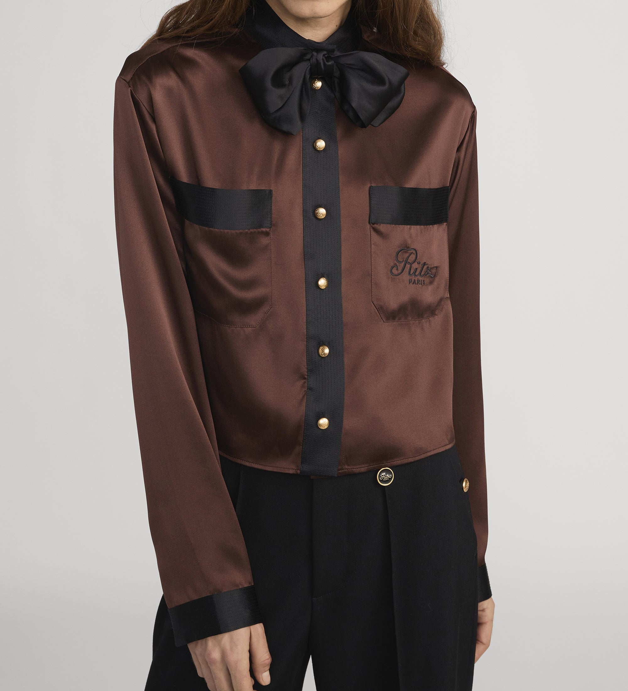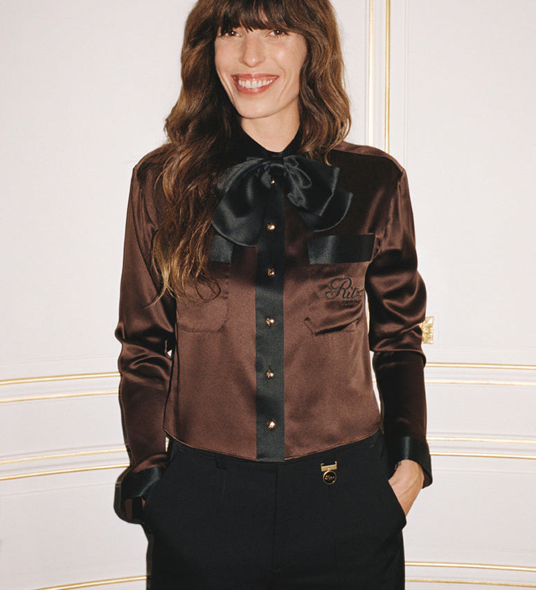 FRAME - Ritz Feminine Silk Blouse -- Chocolate Brown