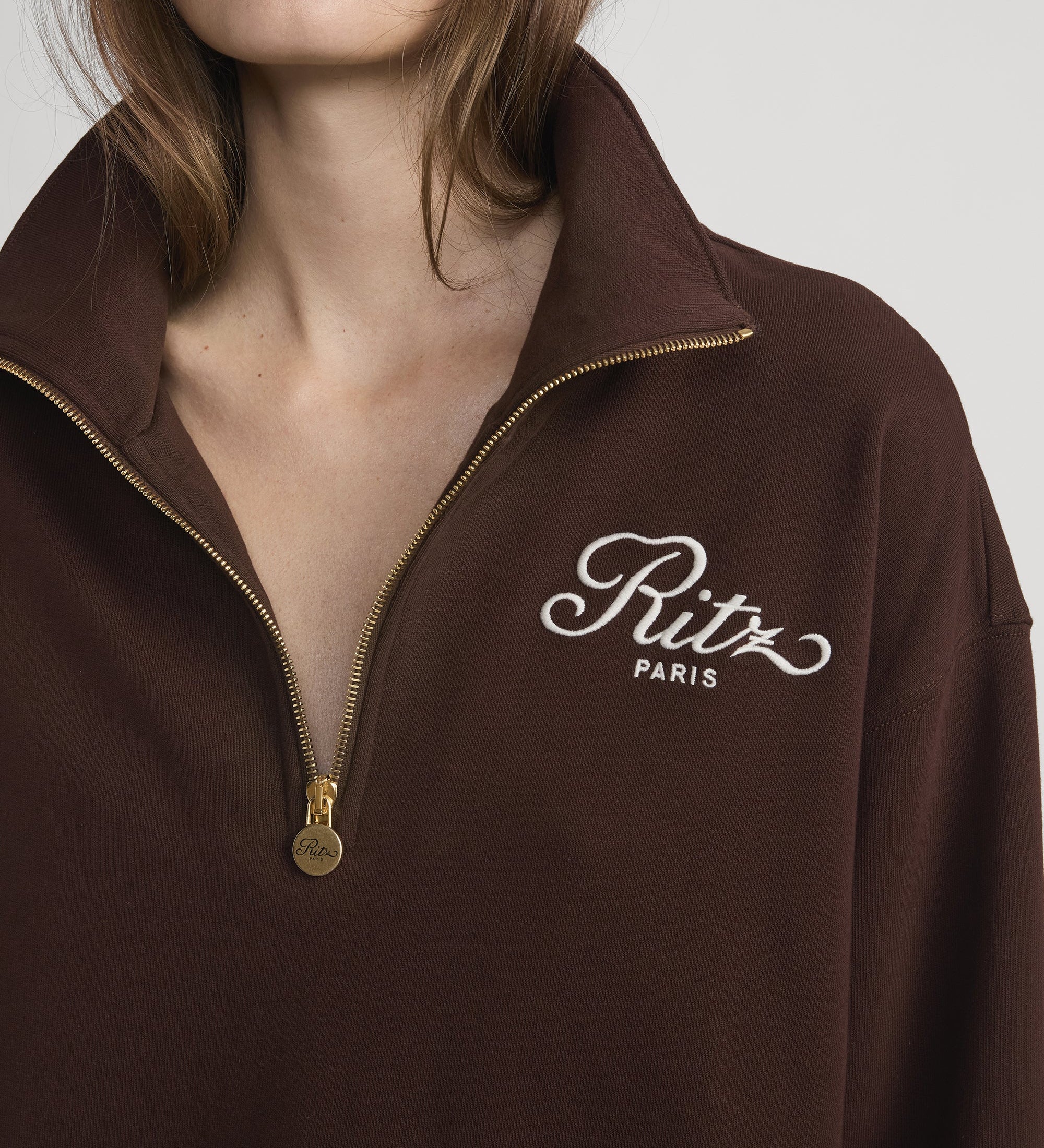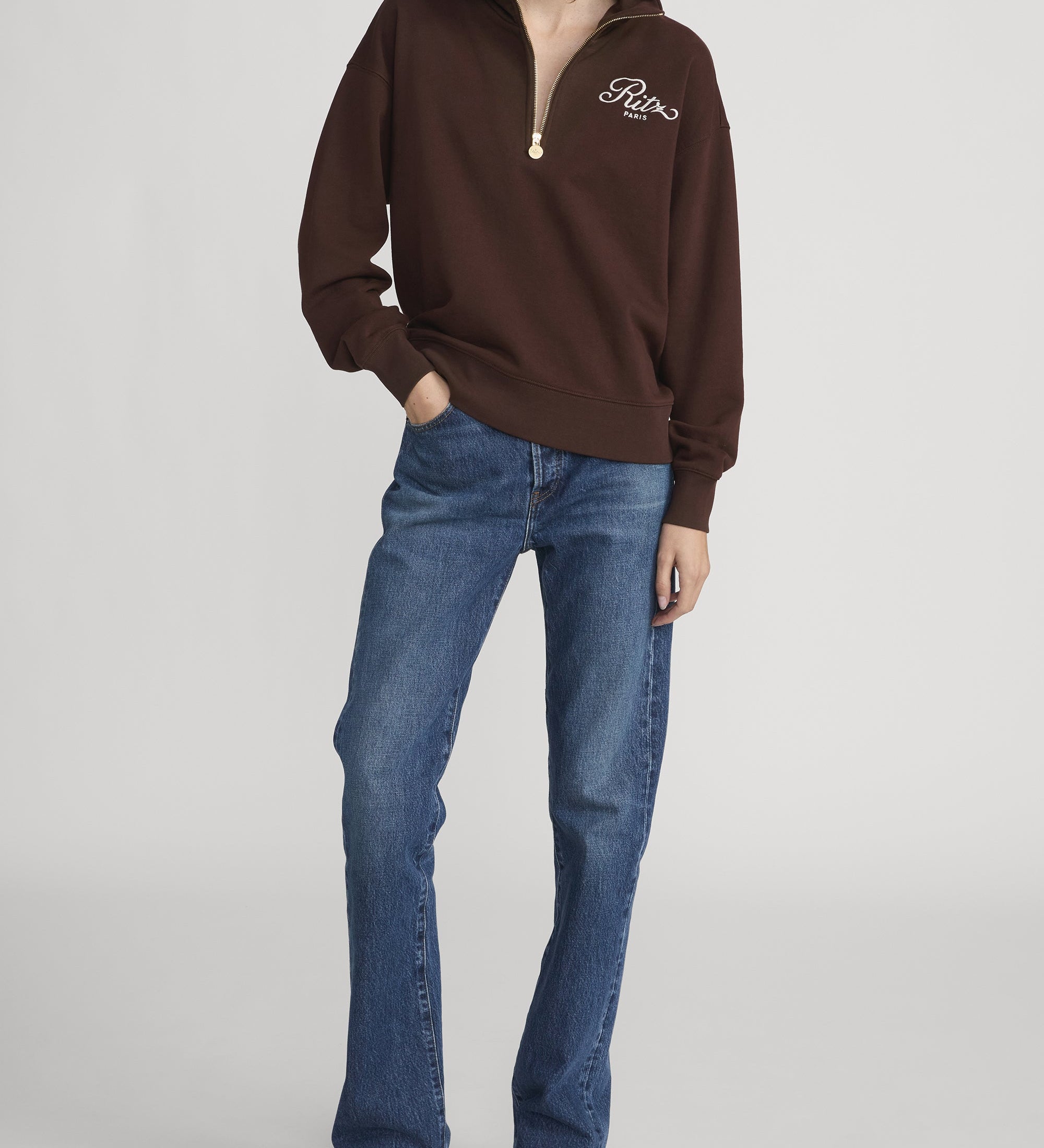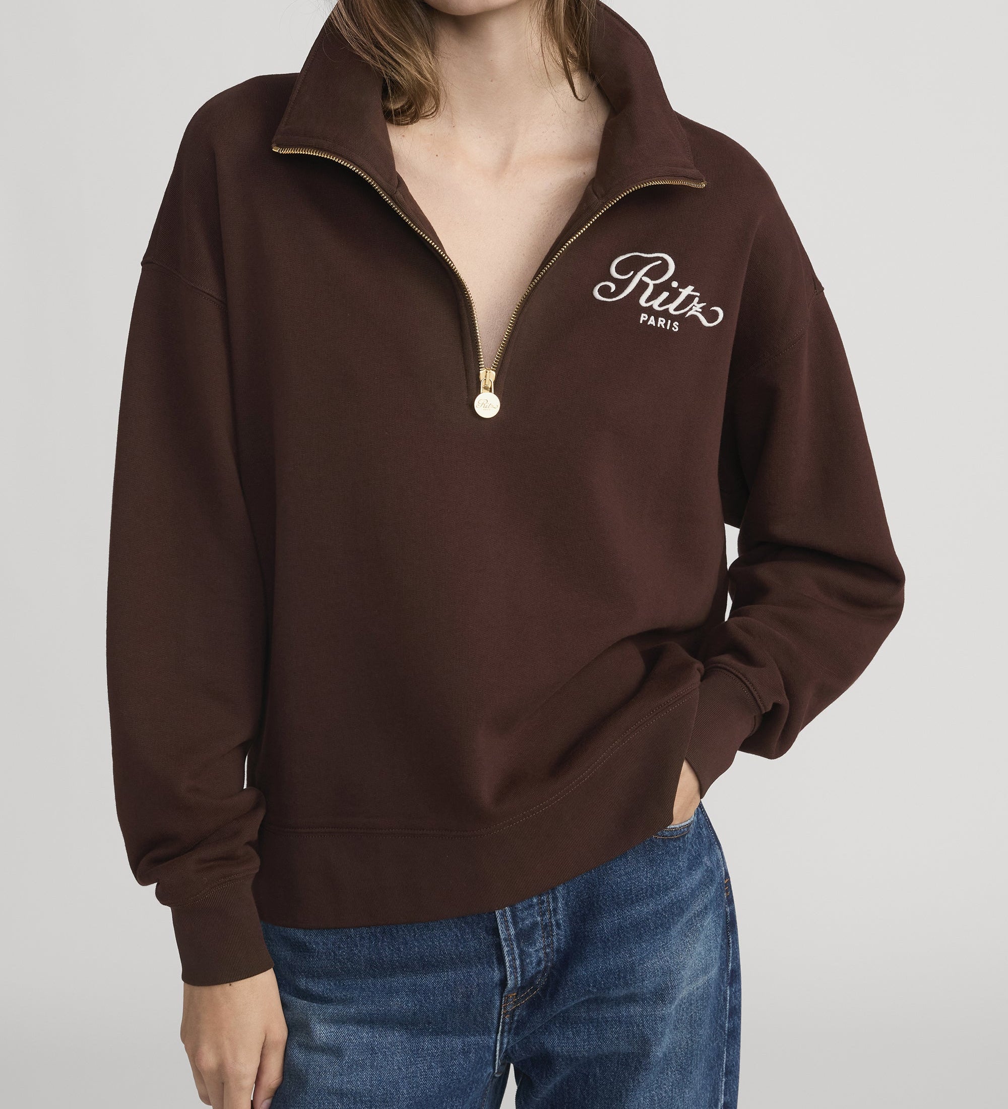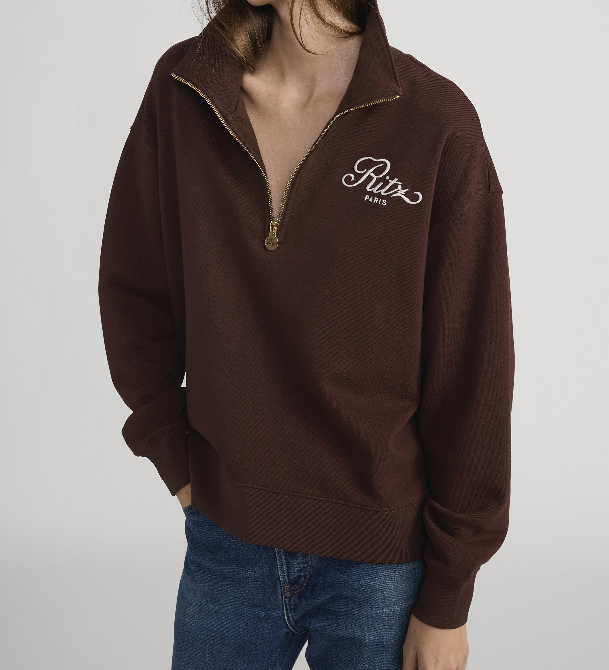 FRAME - Ritz Half Zip Polo -- Chocolate Brown