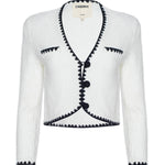 Parisian polish is yours with the Anaya cardigan. A curved hem that defines the waist. Faux chest pockets add a tailored finish, while the crochet trim gives it a striking quality. Pair with high-waisted black trousers for the ultimate in elegant style.