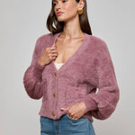 The super soft, cozy-chic cardigan to layer over everything and live in all season long. Now in mauve with gold heart buttons for a romantic touch of glamour.