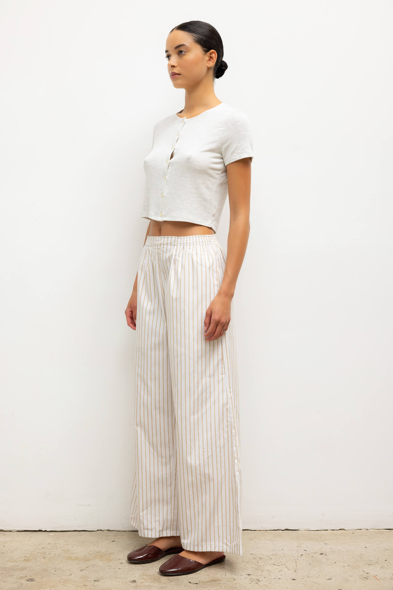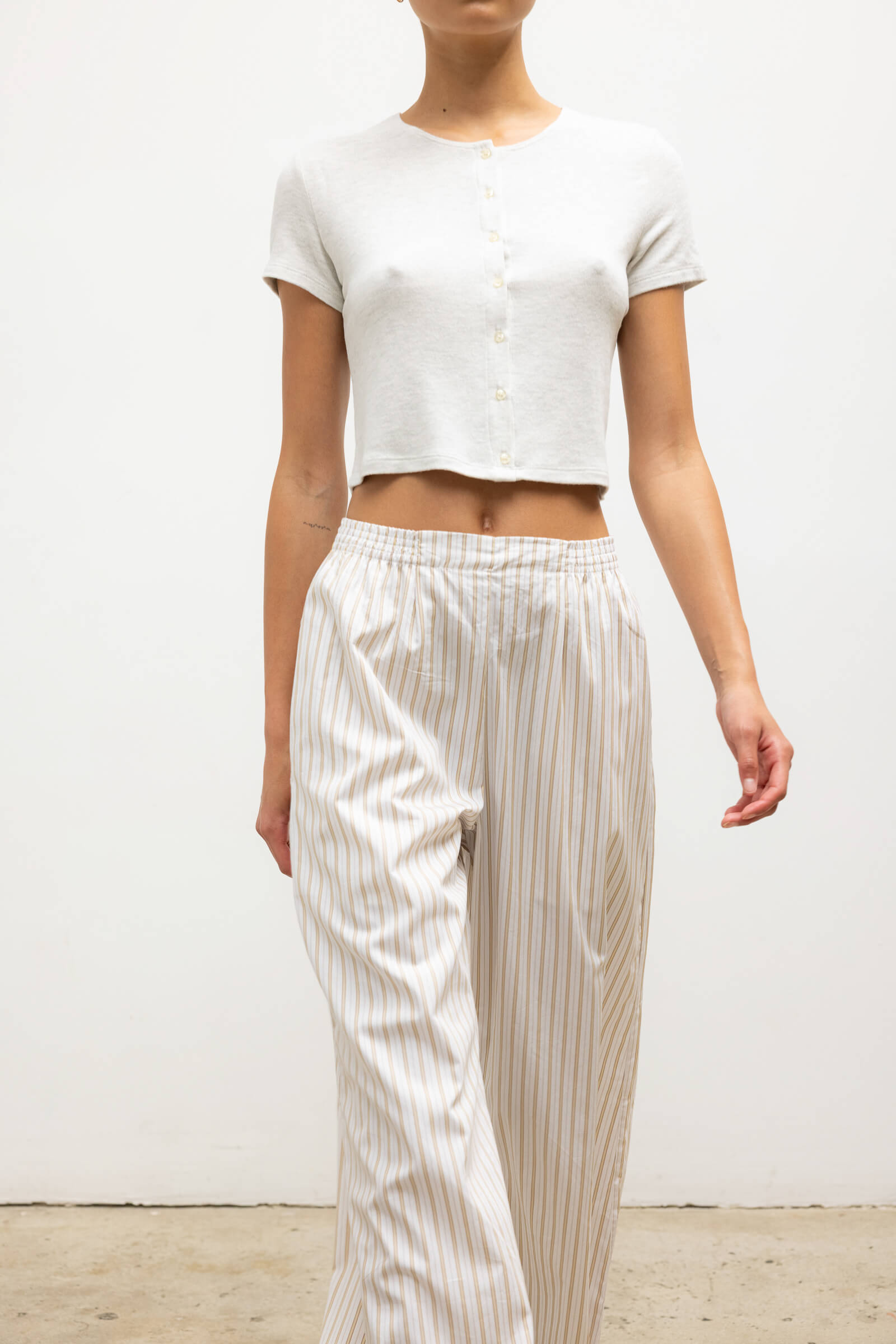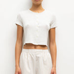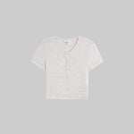 Cut in our buttery soft Lauren Sweater Jersey, The Lauren Short Sleeve Cardigan features a crew neckline, tonal button front closure, and a perfectly cropped length. Make it a matching set with any Lauren top - or mix it with The Pointelle Set in Cloud Melange