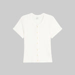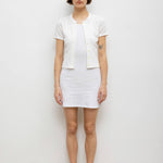 Cut in our nostalgic Pointelle Cotton, The Pointelle Short Sleeve Cardigan features a crew neckline, short sleeves and our signature pinholes stripes, dainty eyelets, tonal buttons and scalloped edging. Wear it buttoned up by itself or open with our new Pointelle Square Neck Mini Dress.