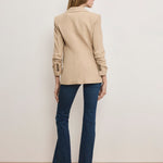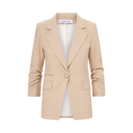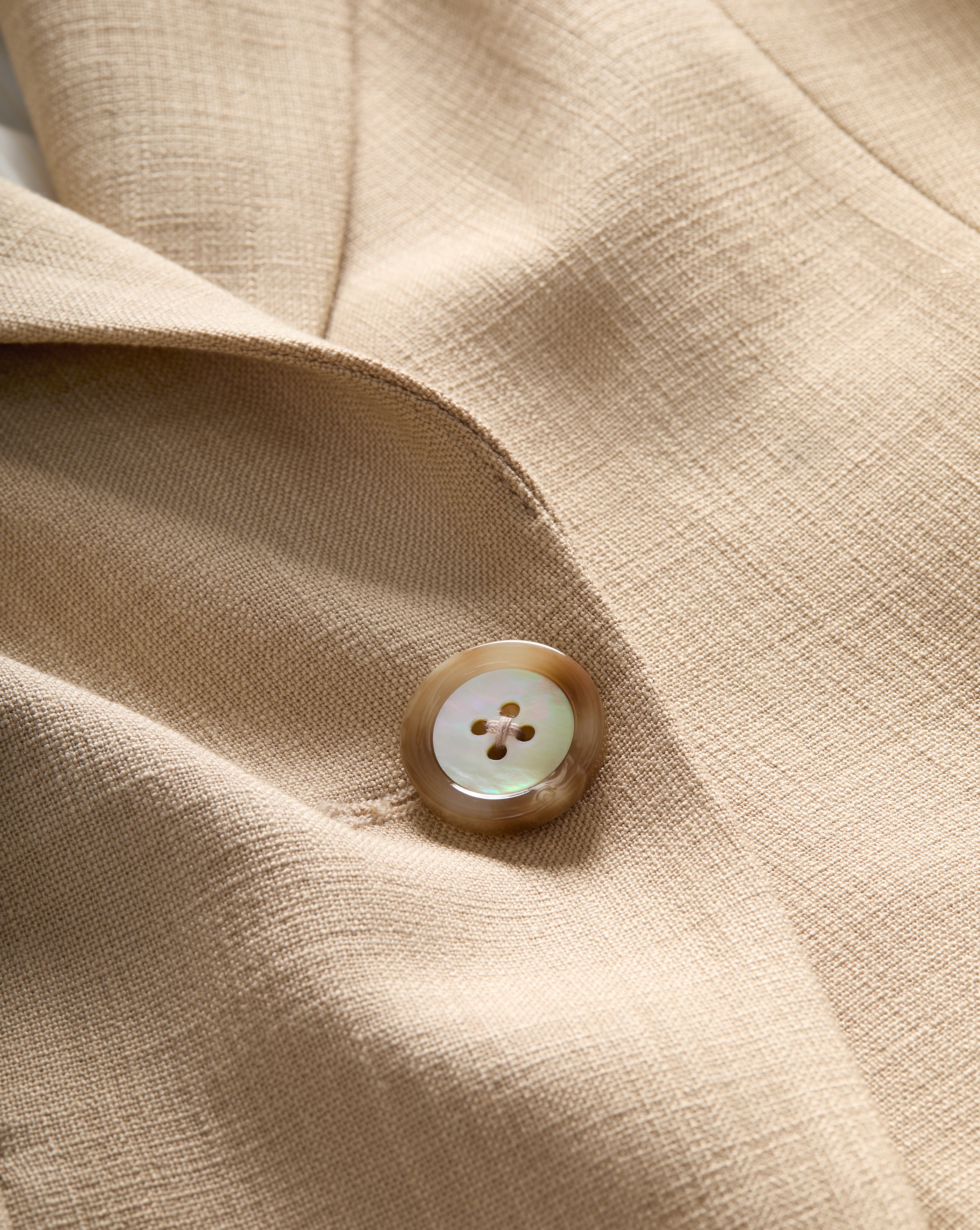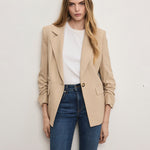 The Battista in khaki will quickly become your new go-to, thanks to its sleek look and impeccable fit. Expertly tailored from a premium stretch blend, this blazer jacket features a classic single-breasted silhouette and pre-ruched sleeves that add an element of nonchalance. Dress it down with jeans or pair with the matching pant for a modern update on the power pantsuit.