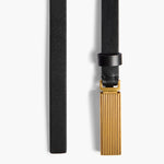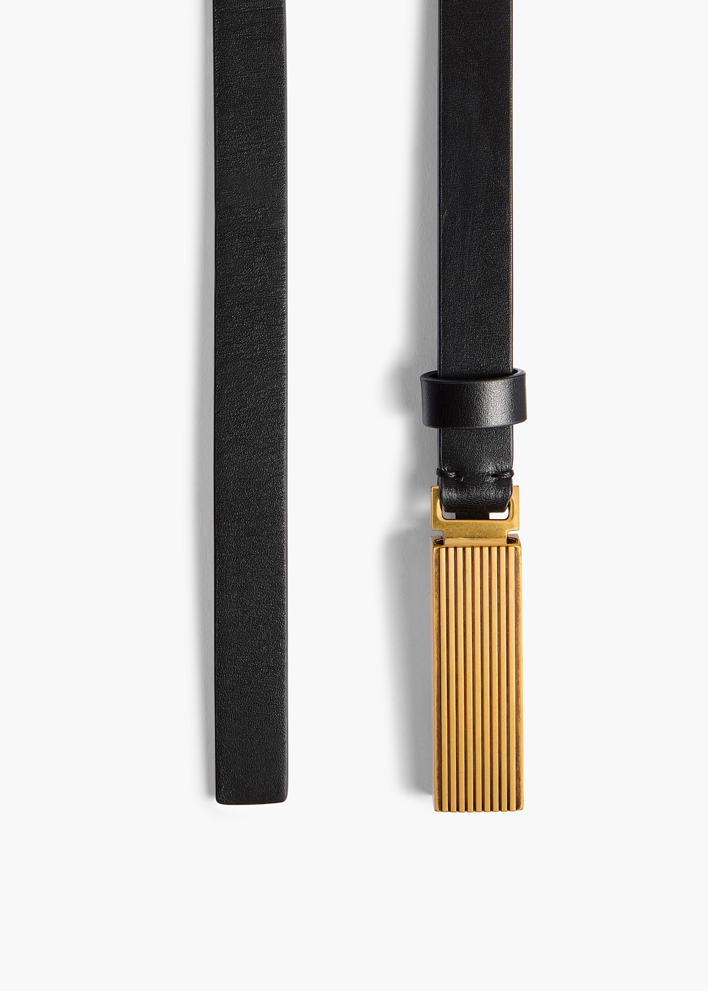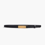 A sleek calfskin belt that transforms signature Empire hardware into a refined closure. Crafted in Italy of 18-karat-gold-plated brass, the jewelry-grade hardware allows for secure fastening without belt holes.